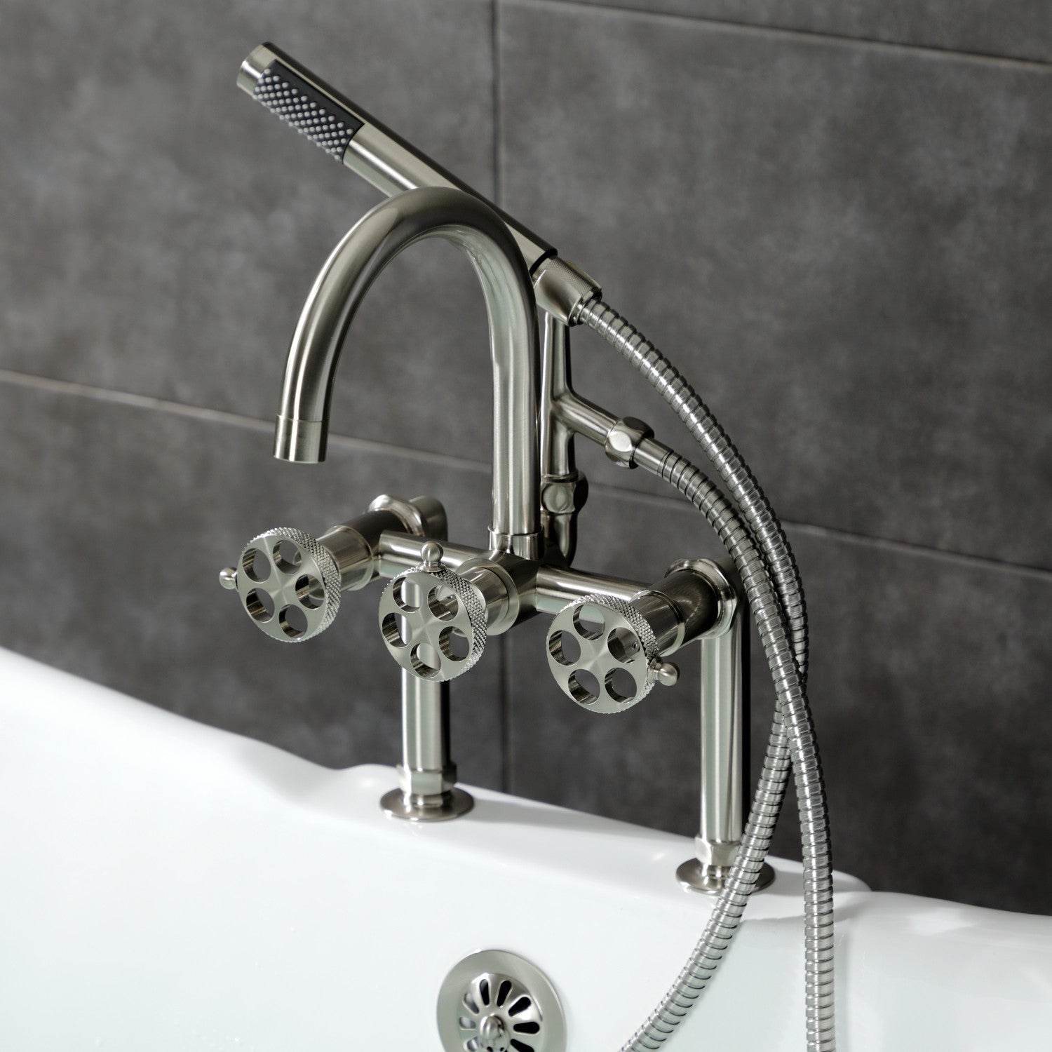 Webb AE8108RKX Three-Handle 2-Hole Deck Mount Clawfoot Tub Faucet with Knurled Handle and Hand Shower, Brushed Nickel