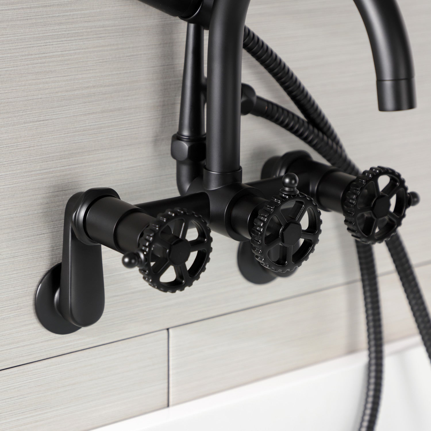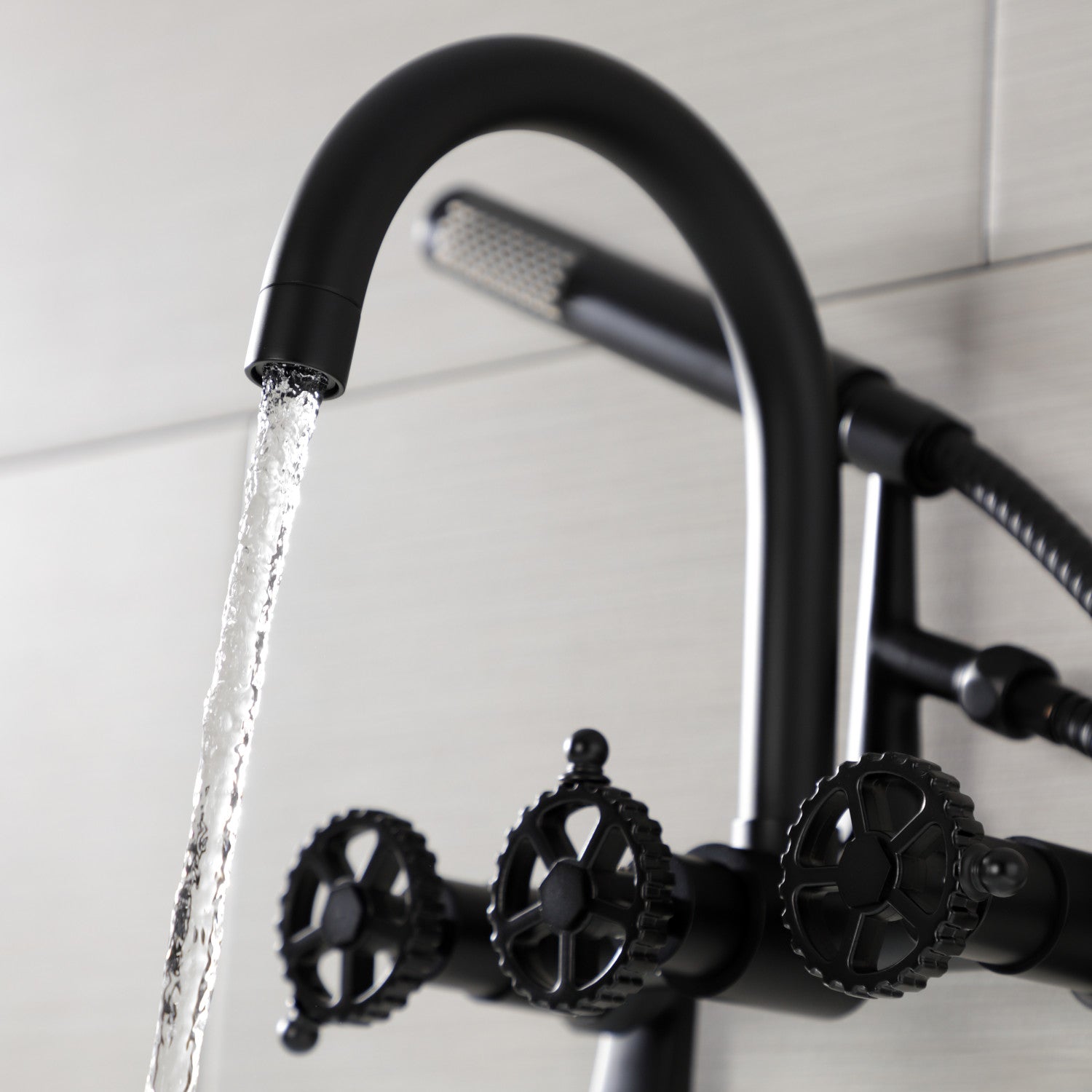Fuller AE8150CG Three-Handle 2-Hole Tub Wall Mount Clawfoot Tub Faucet with Hand Shower, Matte Black