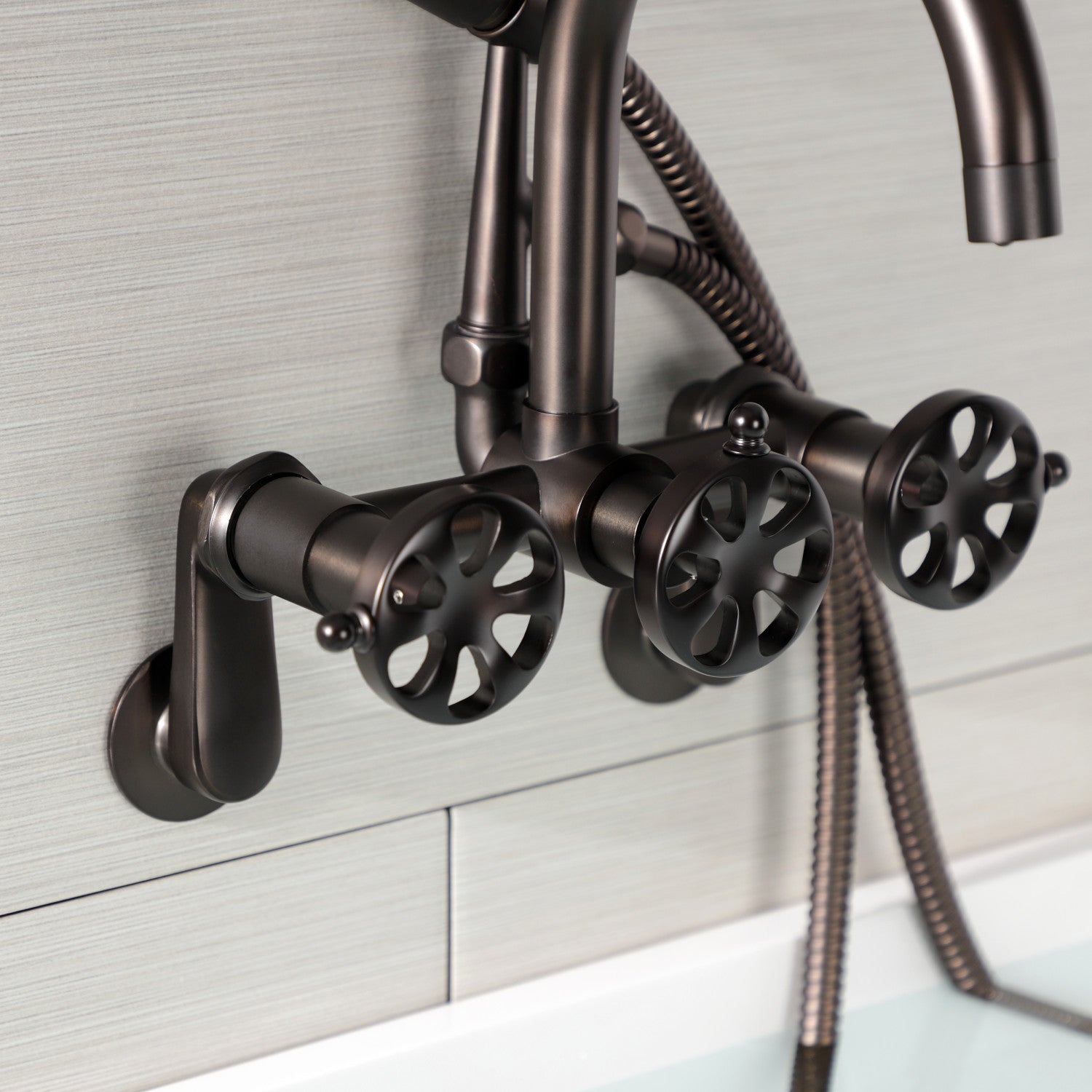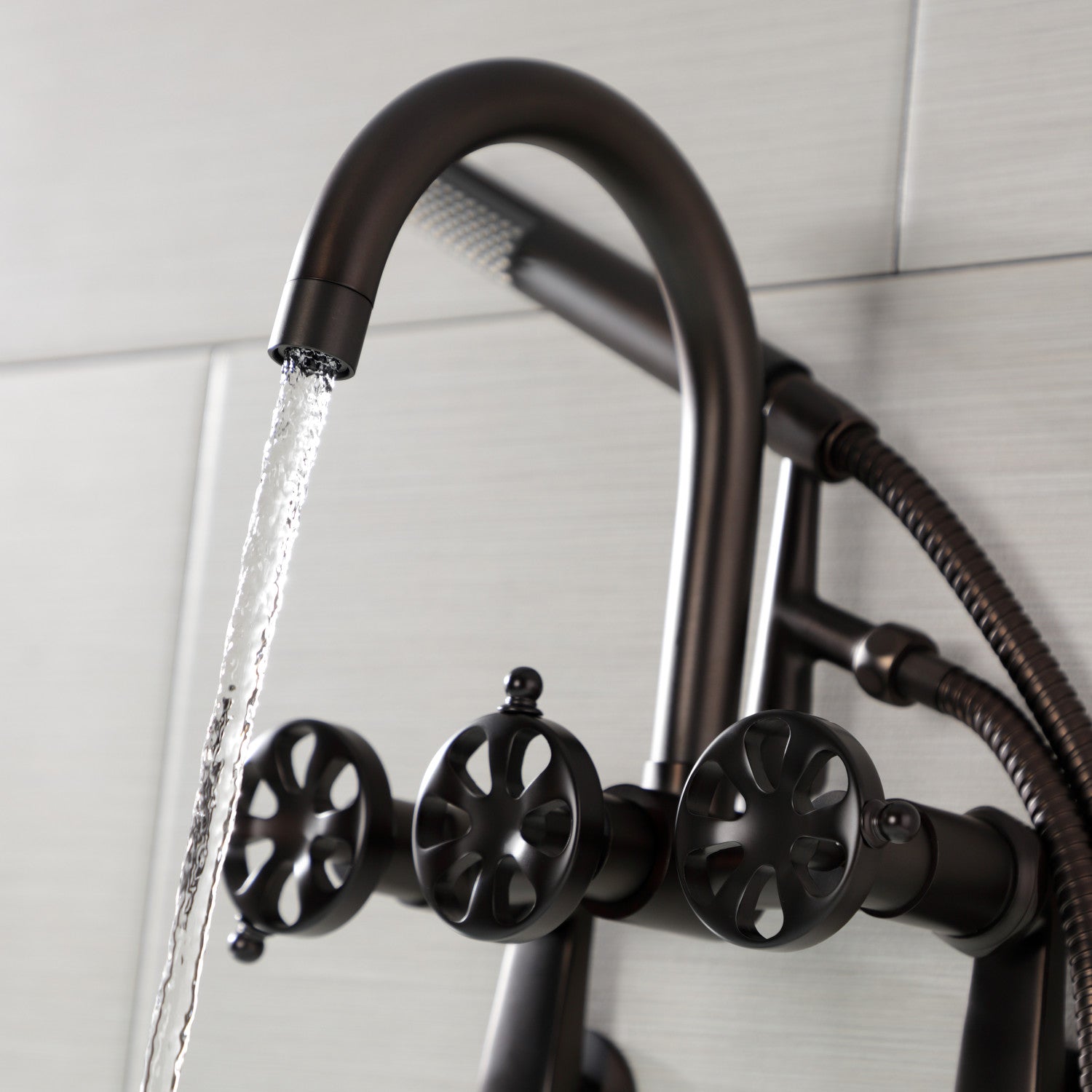 Belknap AE8155RX Three-Handle 2-Hole Tub Wall Mount Clawfoot Tub Faucet with Hand Shower, Oil Rubbed Bronze