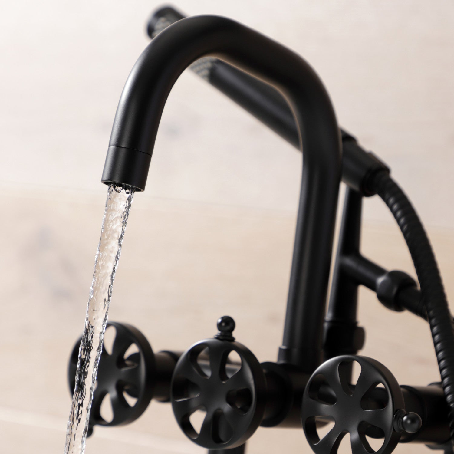 A touch of vintage charm alongside sleek, modern design come together within this deck-mount clawfoot tub faucet. As the perfect complement to your tub, this will complete your refined bathroom decorum with the help of its premium, glistening matte black finish and telephone style hand shower. The solid brass construction also makes for a heavy, quality made product.