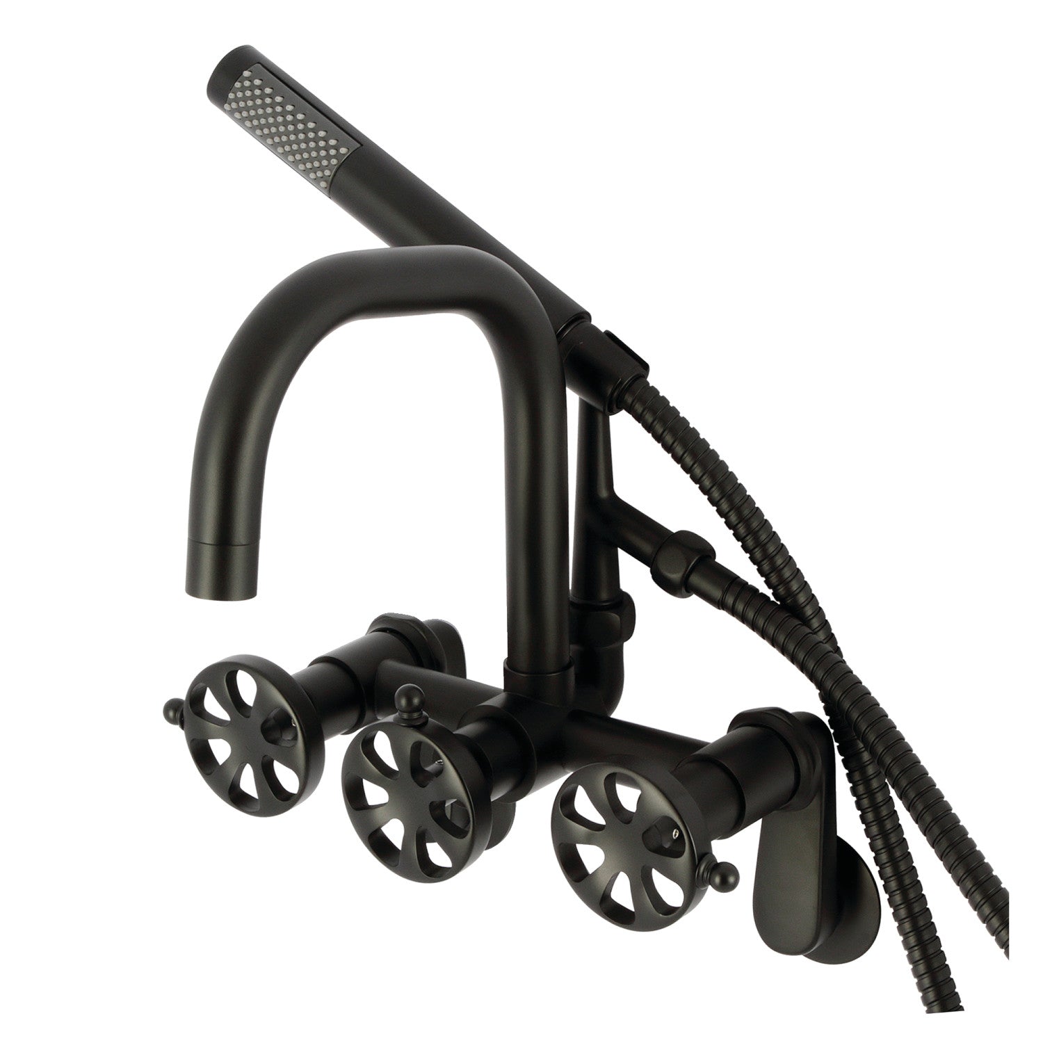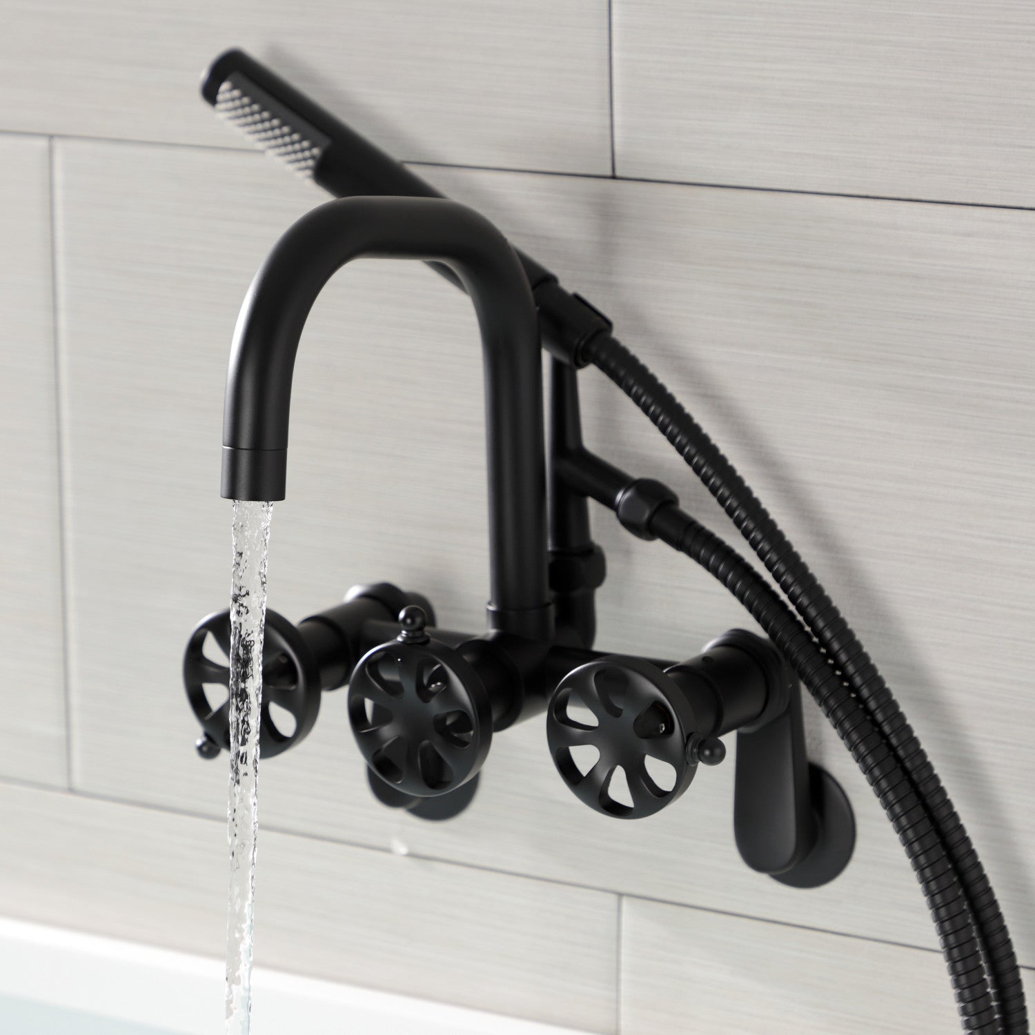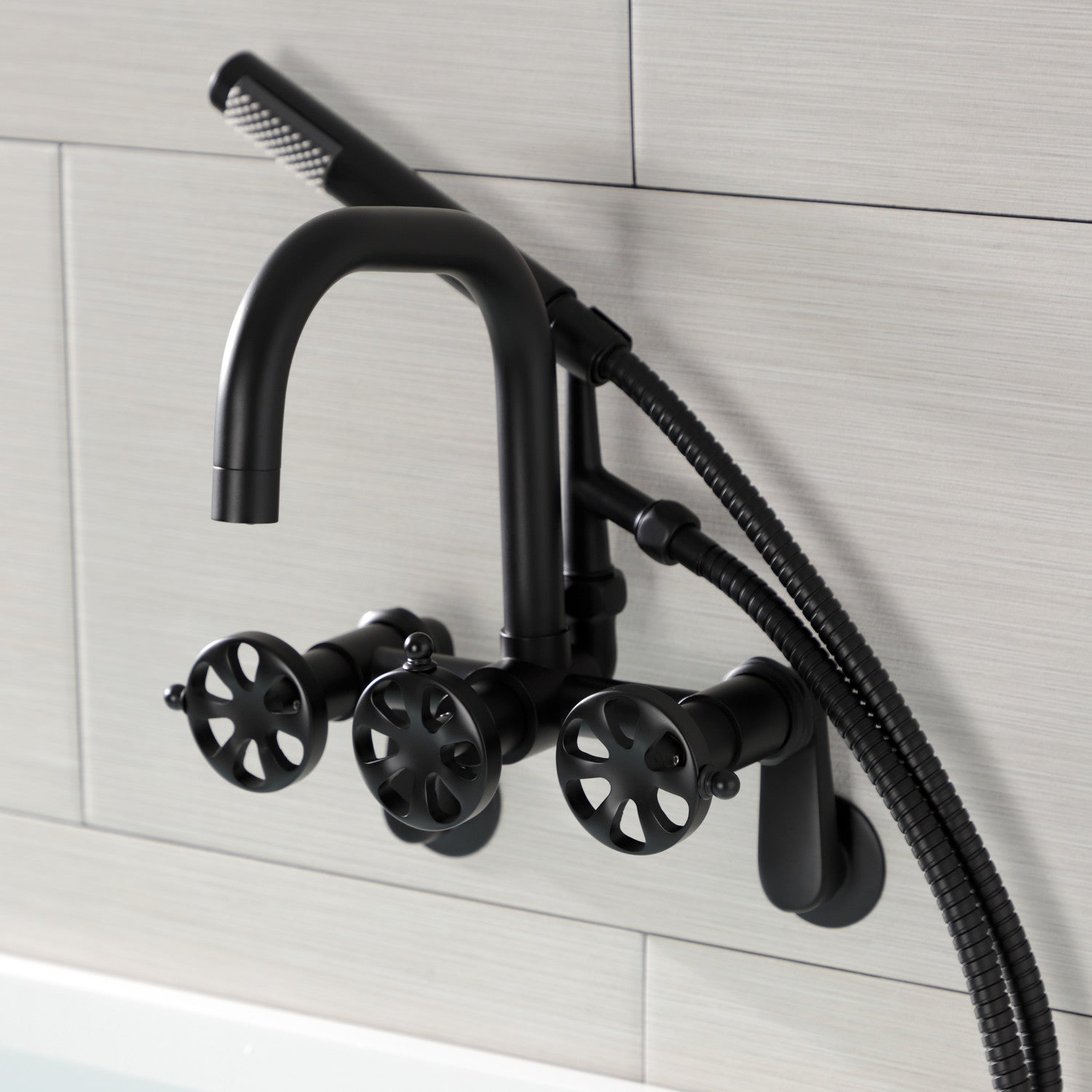 Belknap AE8450RX Three-Handle 2-Hole Wall Mount Clawfoot Tub Faucet with Hand Shower, Matte Black