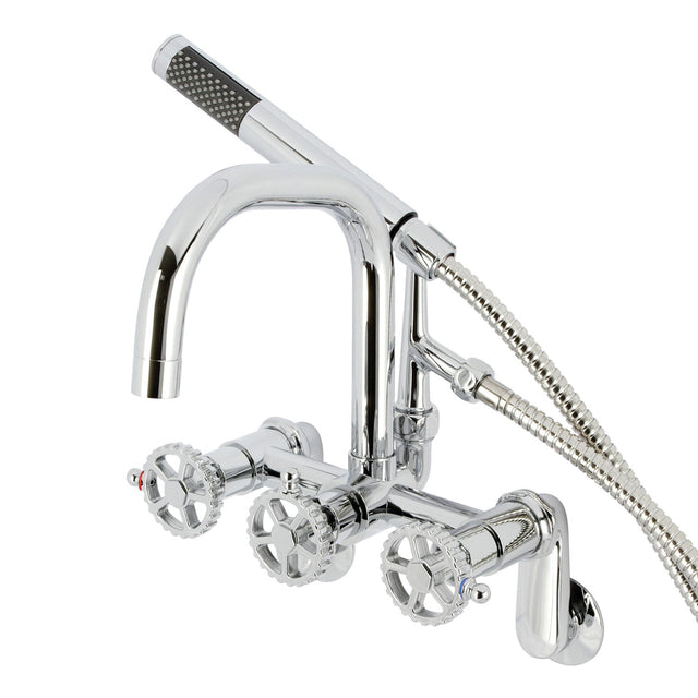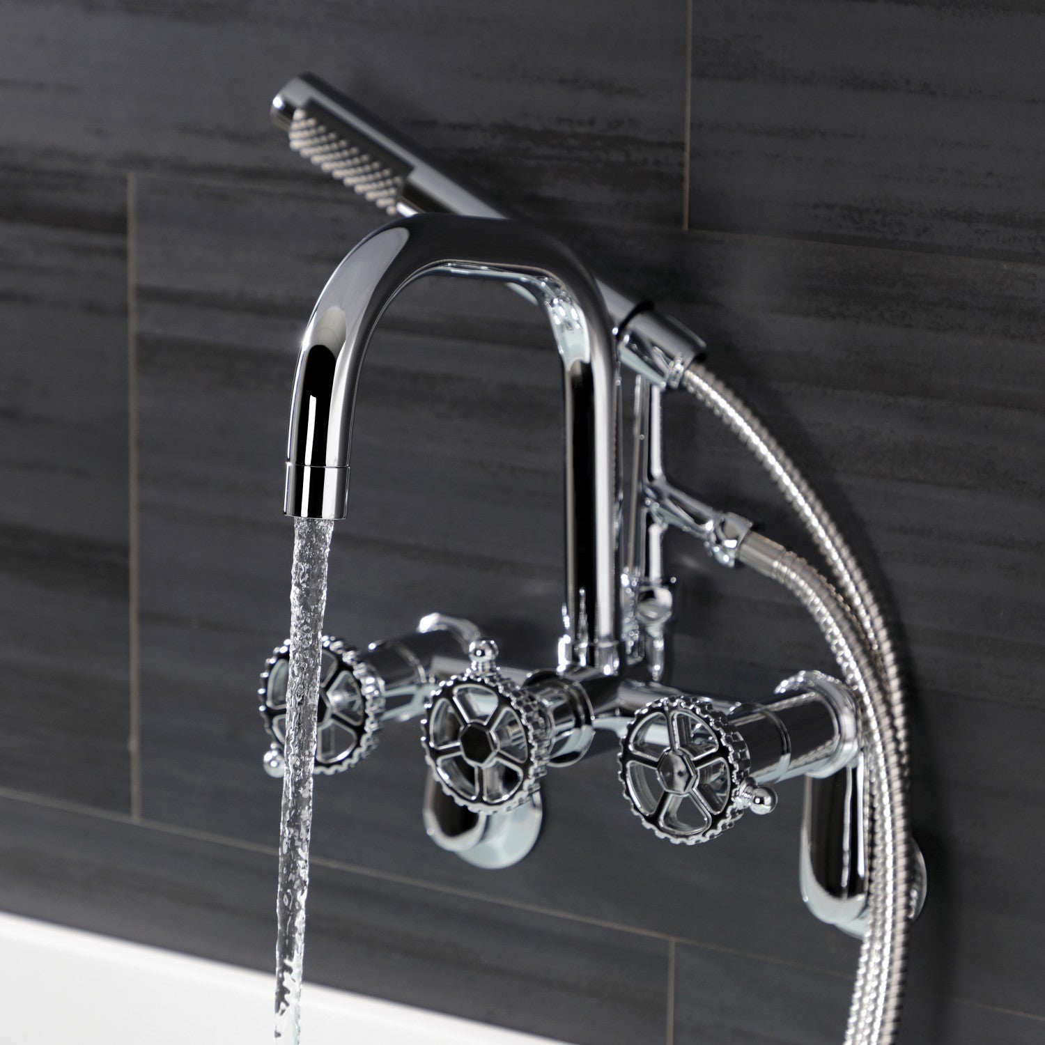 Fuller AE8451CG Three-Handle 2-Hole Wall Mount Clawfoot Tub Faucet with Hand Shower, Polished Chrome