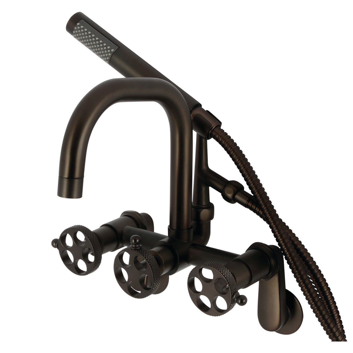 Webb AE8455RKX Three-Handle 2-Hole Adjustable Wall Mount Clawfoot Tub Faucet with Knurled Handle and Hand Shower, Oil Rubbed Bronze