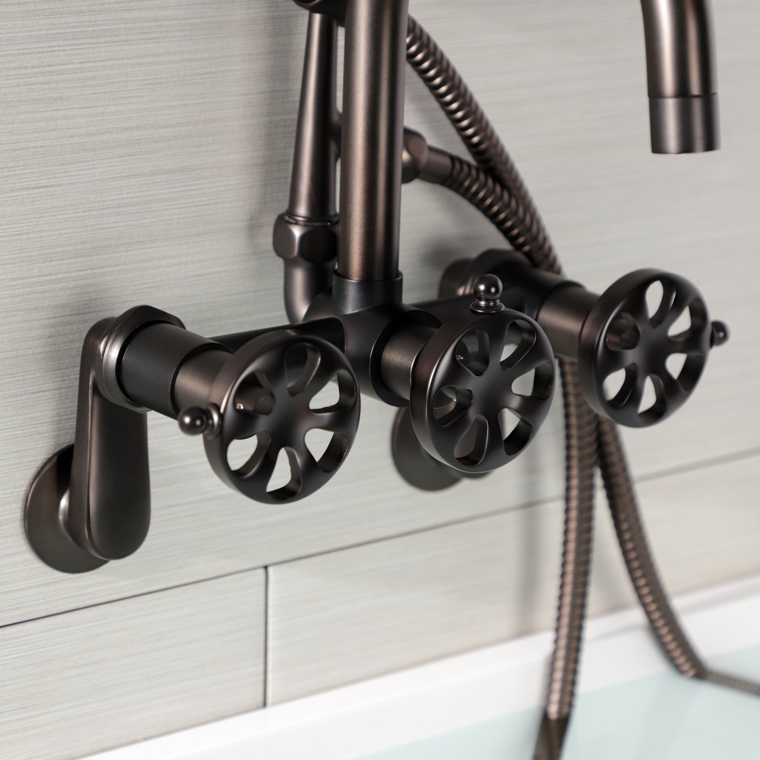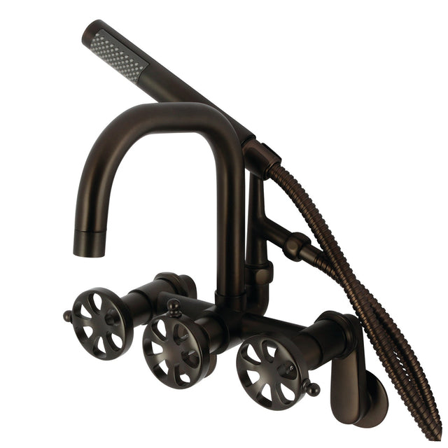 Belknap AE8455RX Three-Handle 2-Hole Wall Mount Clawfoot Tub Faucet with Hand Shower, Oil Rubbed Bronze