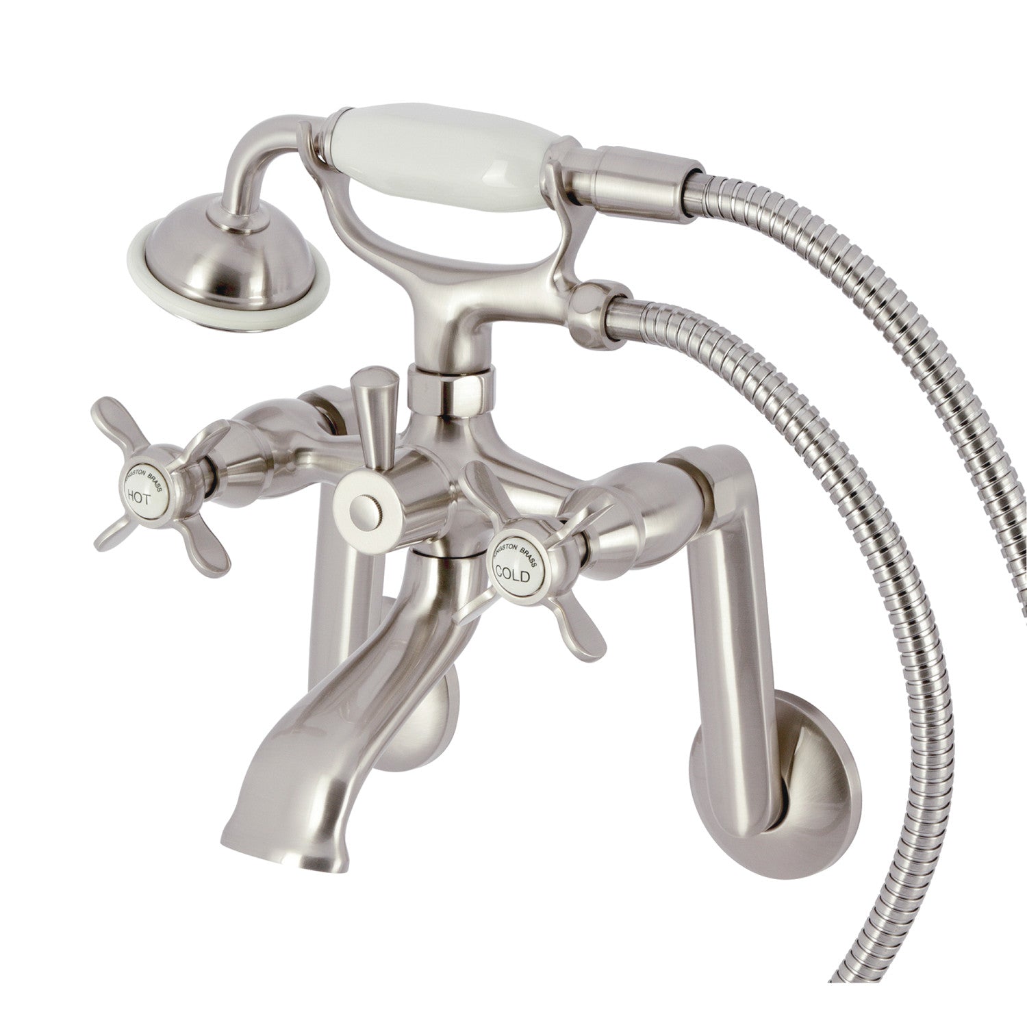 Kingston KS289SN Three-Handle 2-Hole Tub Wall Mount Clawfoot Tub Faucet with Hand Shower, Brushed Nickel