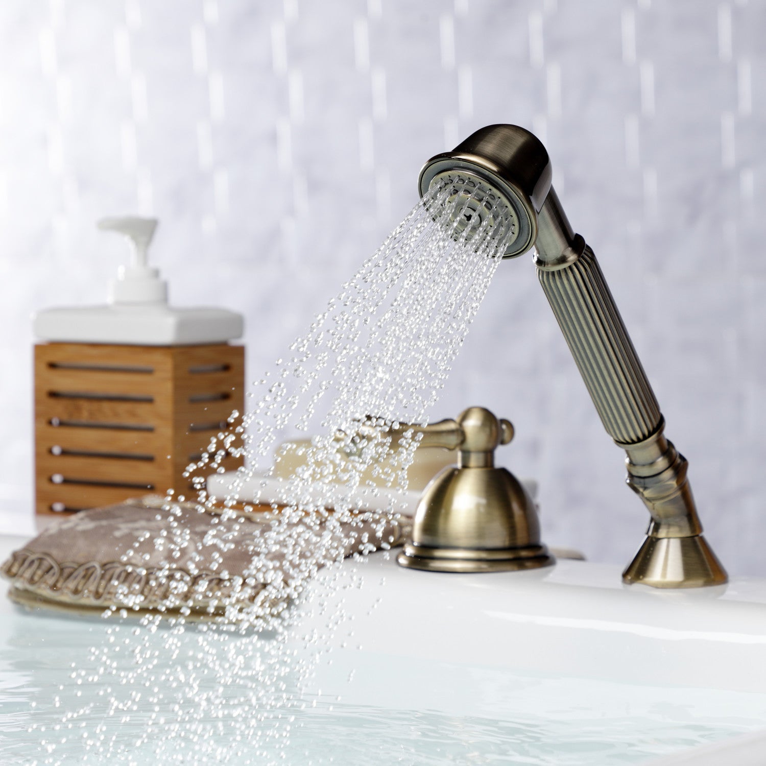 Relax and enjoy the luxury of a handshower during your bath with this diverter valve set for deck mount roman tub faucet. The antique brass finish of this particular set will provide a long lasting and warm touch to your bathroom ensemble. Pair with other shower essentials of the same finish for a cohesive look.