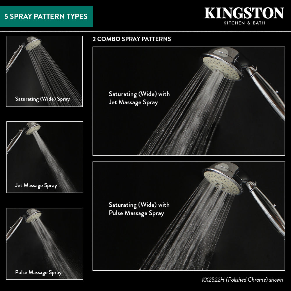 - Individual Spray Patterns include Pulse Massage, Jet Massage, and Saturating (Wide)