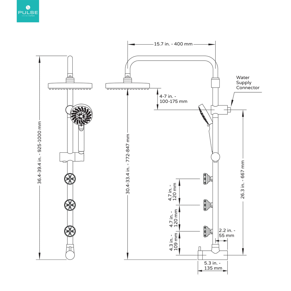 The Lanikai 3 Function Shower System quickly and easily transforms your shower. Enjoy fingertip control via the conveniently located diverter. Choose between a soothing, oversized rain showerhead, convenient multi-function hand shower, or rejuvenating dual-function body jets. The unique brass shower arm pivots and has 3" of height adjustment. Typical install is less than 1 hour-even for the do it yourselfer. It simply connects to the water supply at your existing showerhead location and uses your existing hot/cold shower valve.