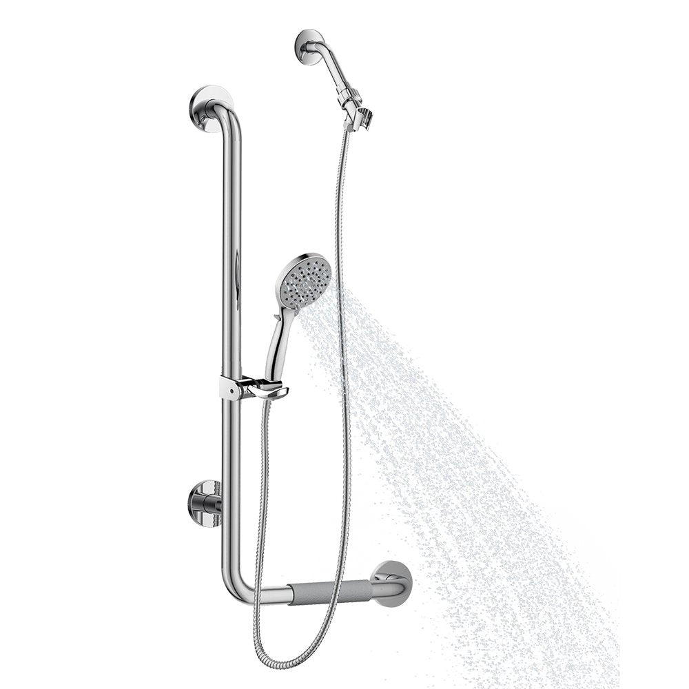 PULSE ShowerSpas 4001L-SSB ErgoSlideBar with Hand Shower, ADA Compliant, Left Grip, Brushed Stainless Steel. The ErgoSlideBar is a Concealed Screw Slide/Grab Bar built to exceed ADA standards. This 1.25” diameter Brushed Stainless Steel grab bar features: a comfortable (left-side) ergonomic soft grip; ADA compliant hand held holder with sliding and lock functions. Multi-function hand shower includes a 72" stainless steel hose plus a convenient finger-tip flow control to select a trickle option. Constructed of high-quality 304 stainless steel for long-life and care-free function. The industrial grade build combined with a decorative design makes this slide bar perfect for added safety all while complementing the desired look of your shower. Hand shower may be mounted on an existing shower arm and used as a showerhead. The ErgoSlideBar is compatible with any pre-existing or new shower system. Also available in a right-side grip version as well as Polished Stainless Steel and Oil-Rubbed Bronze finishes (sold separately). Specifications: 1/2" NPT brass nipple; 2.5 gallons-per-minute. Manufacturer’s Limited Lifetime Warranty. PULSE ShowerSpas "Make Every Day Feel Like A Spa Day!"