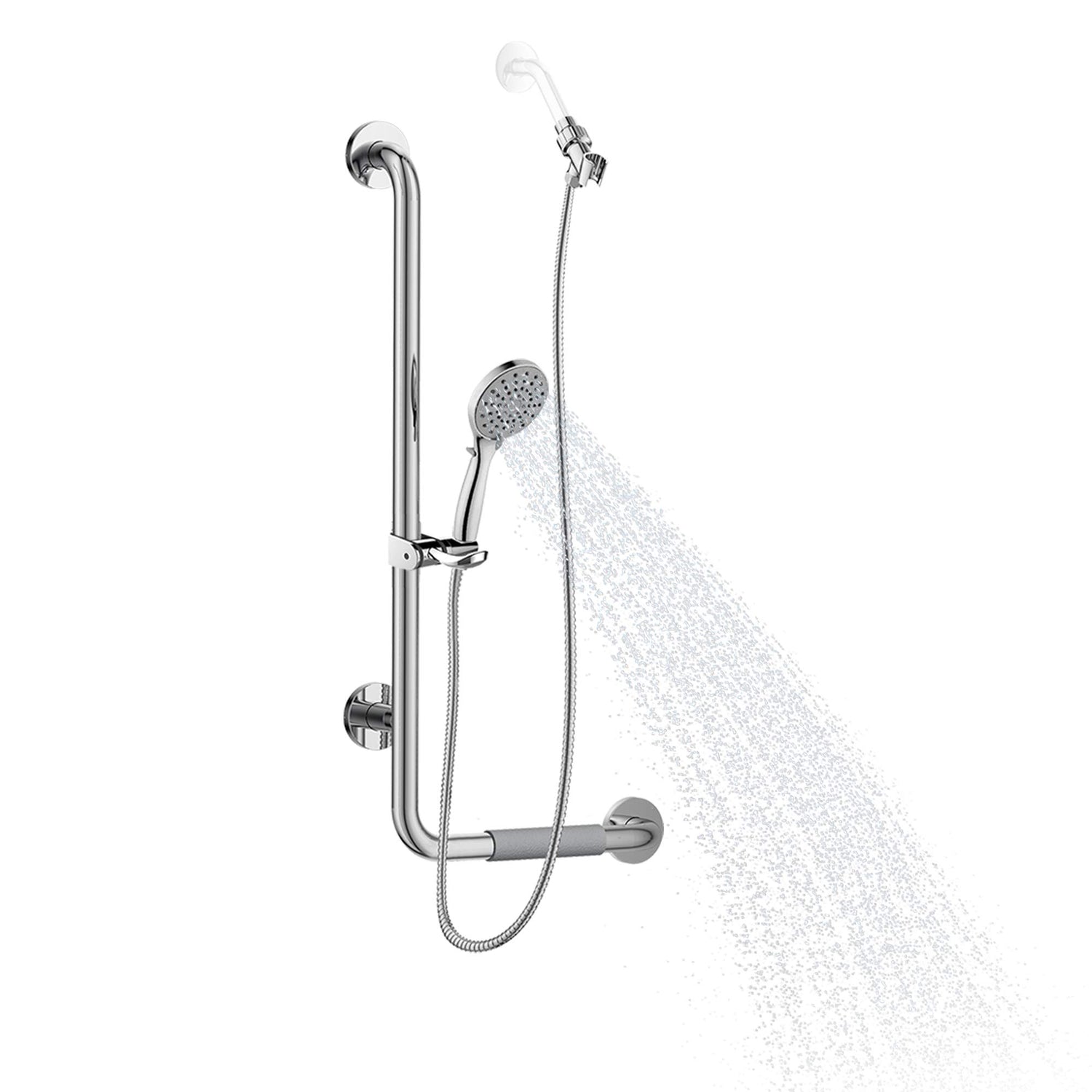 PULSE ShowerSpas 4001L-SSP ErgoSlideBar with Hand Shower, ADA Compliant, Left Grip, Polished Stainless Steel. The ErgoSlideBar is a Concealed Screw Slide/Grab Bar built to exceed ADA standards. This 1.25” diameter Polished Stainless Steel grab bar features: a comfortable (left-side) ergonomic soft grip; ADA compliant hand held holder with sliding and lock functions. Multi-function hand shower includes a 72" stainless steel hose plus a convenient finger-tip flow control to select a trickle option. Constructed of high-quality 304 stainless steel for long-life and care-free function. The industrial grade build combined with a decorative design makes this slide bar perfect for added safety all while complementing the desired look of your shower. Hand shower may be mounted on an existing shower arm and used as a showerhead. The ErgoSlideBar is compatible with any pre-existing or new shower system. Also available in a right-side grip version as well as Brushed Stainless Steel and Oil-Rubbed Bronze finishes (sold separately). Specifications: 1/2" NPT brass nipple; 2.5 gallons-per-minute. Manufacturer’s Limited Lifetime Warranty. PULSE ShowerSpas "Make Every Day Feel Like A Spa Day!"