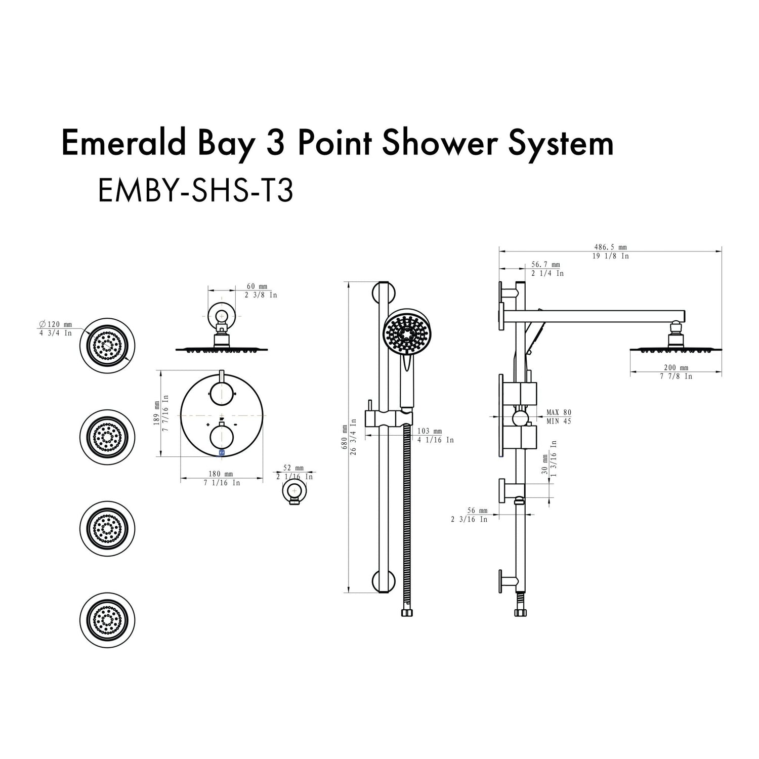 ZLINE Emerald Bay Thermostatic Shower System with Body Jets (EMBY-SHS-T3)