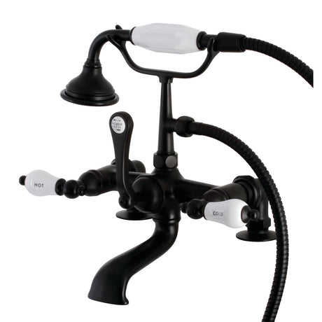 Kingston KS225PXMB Three-Handle 2-Hole Tub Wall Mount Clawfoot Tub Faucet wit...