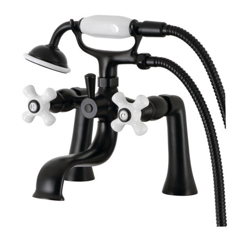 Kingston KS268PXMB Three-Handle 2-Hole Deck Mount Clawfoot Tub Faucet with Ha...