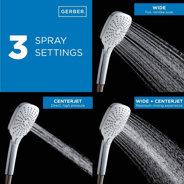 Offering a rounded yet angular shape, the square slide bar assembly with Soft Square handshower balances a sleek appearance with contemporary finesse. This assembly includes 3-function handshower, slide bar, all-metal hose, and installation hardware. The handshower’s integrated push button allows user to alternate between calming spray, muscle-relieving centerjet pulse, or a combination spray + centerjet. Easy clean soft-touch nozzles effortlessly wipe clean and resist limescale buildup. The WaterSense certified handshower dispenses a 1.75 gpm flow rate without minimizing water velocity. The slide bar bracket can be used to adjust handshower height and angle to suit user preference. Combine this assembly with a tub & shower or shower-only trim kit for customized, spa-like bathing. Let the Soft Square handshower with slide bar’s subdued styling and refreshing cascade take the edge off your day. Product Information Product Overview Flow Rate: 1.75 gpm Max Flow Rate @80 psiSpray/Stream Function: 3 Functions: Wide Centerjet and Wide + CenterjetBrand: Gerber Features Push-button control allows user to select the desired spray patternEasy Clean Nozzles: Features Easy Clean Soft-Touch NozzlesIntegral Check Valve: Includes integral check valve for backflow preventionWarranty: Limited lifetime Description Offering a rounded yet angular shape the square slide bar assembly with Soft Square handshower balances a sleek appearance with contemporary finesse. This assembly includes 3-function handshower slide bar all-metal hose and installation hardware. The handshower s integrated push button allows user to alternate between calming wide spray muscle-relieving centerjet pulse or a combination wide + centerjet. Easy clean soft-touch nozzles effortlessly wipe clean and resist limescale buildup. The WaterSense certified handshower dispenses a 1.75 gpm flow rate without minimizing water velocity. The slide bar bracket can be used to adjust handshower height and angle to suit user preference. Combine this assembly with a tub & shower or shower-only trim kit for customized spa-like bathing. Let the Soft Square handshower with slide bar s subdued styling and refreshing cascade take the edge off your day. Components Hose Type: Includes Durable 72 All-Metal Interlock Shower Hose with Brass ConicalsIncludes: Square Slide Bar Soft Square Handshower Shower Hose and all Mounting HardwareSold Separately Optional: Supply Elbow D469059