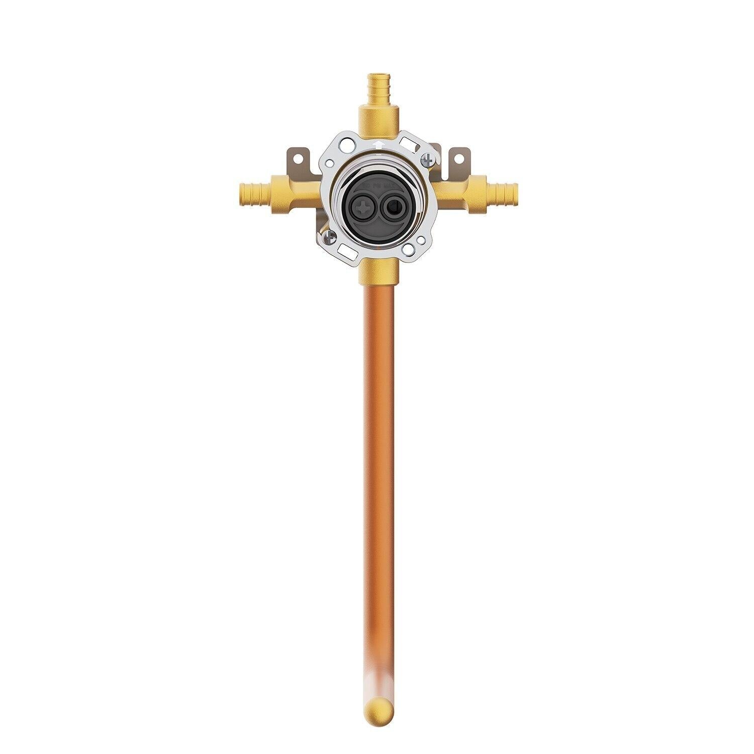 Product Information Product Overview Valve Type: Pressure BalanceBrand: Gerber Features Accommodates Standard Back-to-Back and Thin Wall InstallationsFeatures intuitive Quarter-Turn Service StopsFor Use with all Tc Series Tub/Shower Trim Kits without Diverter on ValveForged Valve BodyIncludes Rough-in Plaster Guard and Pressure-Test CapTreysta Pressure Balance Ceramic Disc Cartridge Ships with Tc Series Trim Kit Description The Treysta Tub & Shower Valve is a versatile and innovative solution for your plumbing needs. Whether you are renovating your bathroom or building a new home this valve provides reliable performance and flexibility to suit your installation requirements. The valve uses a pressure balance cartridge which is compatible with all configurations ensuring ease of installation and maintenance.If you are looking for a Pex connection for your shower valve the Treysta valve is a perfect choice. With a crimp Pex connection and a pre-installed copper stub-out for tub spouts the valve eliminates the need for measuring and soldering saving you time and effort. Moreover the shower outlet uses the same connection type as the hot and cold inlets reducing the need for additional tools or adaptors.Whether you re a professional plumber or a Diy enthusiast the Treysta Tub & Shower Valve with Pex connection is an ideal choice for your next project. It offers the convenience and flexibility you need combined with the reliable performance and durability you expect from Gerber products.