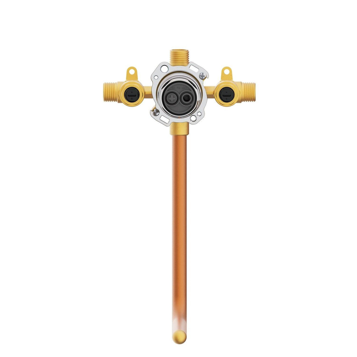 Product Information Product Overview Valve Type: Pressure BalanceBrand: Gerber Features Accommodates Standard Back-to-Back and Thin Wall InstallationsFeatures intuitive Quarter-Turn Service StopsFor Use with all Tc Series Tub/Shower Trim Kits without Diverter on ValveForged Valve BodyIncludes Rough-in Plaster Guard and Pressure-Test CapTreysta Pressure Balance Ceramic Disc Cartridge Ships with Tc Series Trim Kit Description Engineered with the experts in mind the Treysta tub & shower valve is Gerber s most innovative valve yet. Powered by 90 years of Gerber reliable performance Treysta provides flexibility based on the specific requirements of each installation. Treysta uses a common platform of pressure balance cartridge for all configurations meaning that a single cartridge fits in all valve bodies. From the intuitive open and close stops for easy maintenance to the ingenuity of the installation and pressure-testing features Treysta gets the job done quickly allowing confidence and peace of mind. This model features a pre-installed copper stub-out for tub spouts eliminating the need for measuring and soldering saving time and effort. Additionally the shower outlet is the same connection type as the hot and cold inlets minimizing the need for additional tools or adaptors.