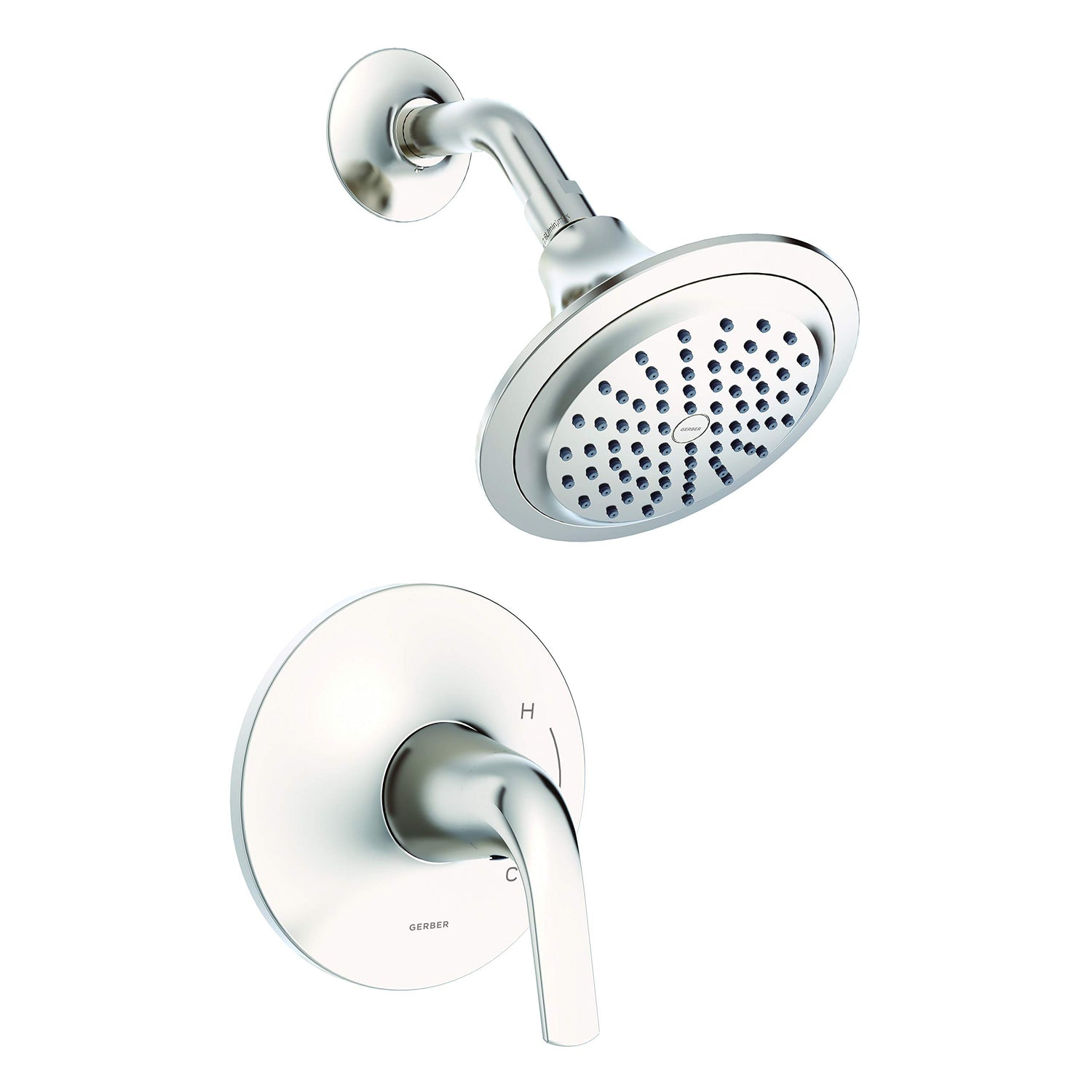 Product Information Product Overview Flow Rate: 1.75gpm Max Flow Rate @ 80 psiShower Arm Length & Material: 6 Metal Shower ArmSpray/Stream Function: Single Function Offers a Powerful SprayValve Type: Pressure BalanceBrand: Gerber Features Cartridge Type: Includes Treysta Ceramic Disc Pressure Balance CartridgeEasy Clean Nozzles: Features Easy Clean Soft-Touch NozzlesIntegral Check Valve: Integral Check Valves in Cartridge Body to Prevent Cross-FlowPressure Manifold: Features Pressure Manifold technology to ensure wide coverage and a powerful spray Components Showerhead: Features Lemora Single Function Showerhead