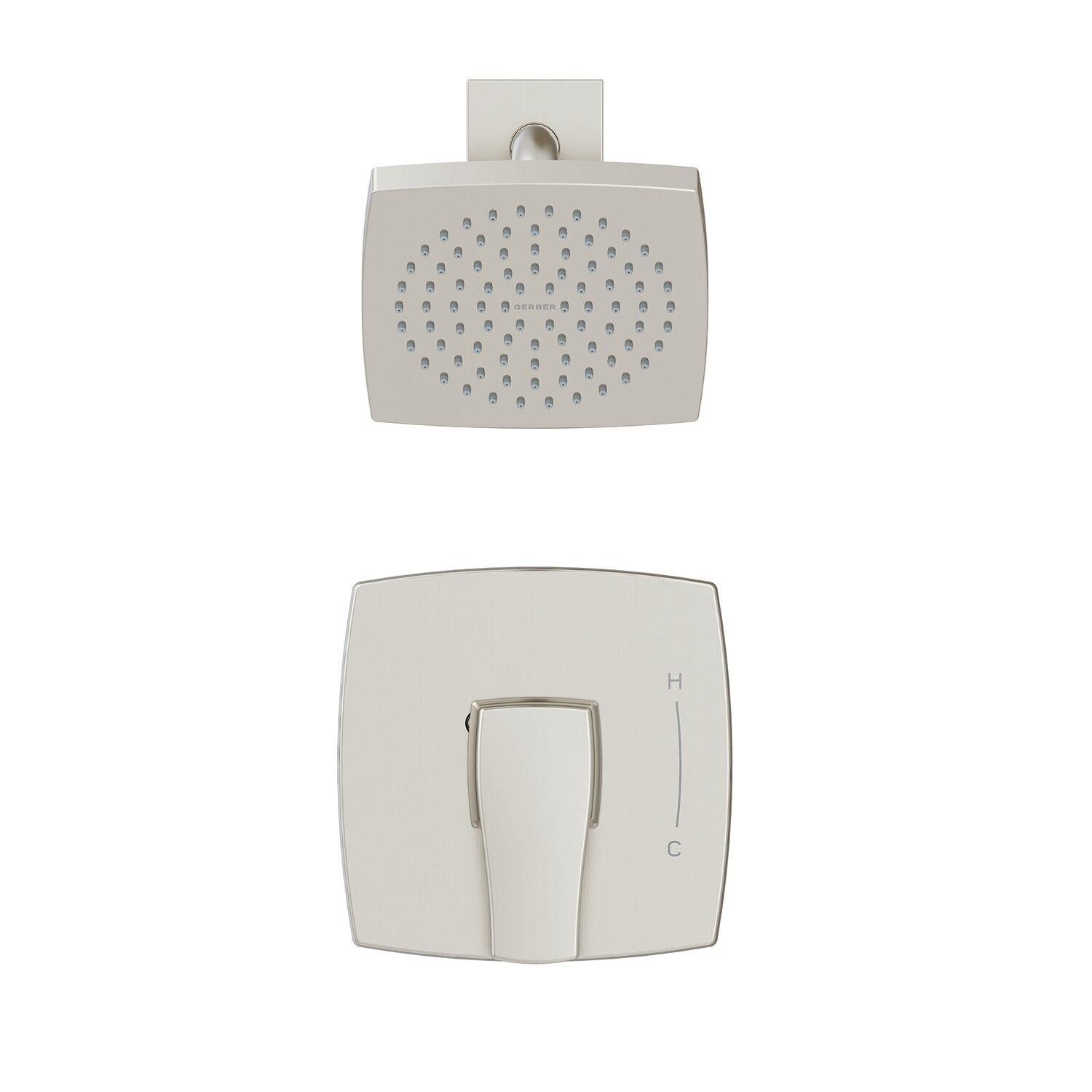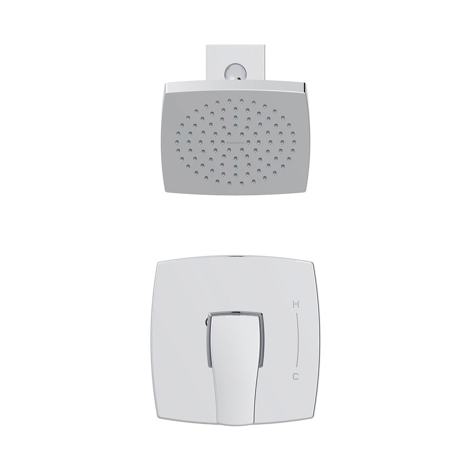 Melding straight edges with soft curves, the Tribune Shower-Only Trim Kit creates a unifying theme to coordinate the look of todayβs bathroom. Featuring a large, 6β square showerhead to deliver a surging cascade of water, the motif is carried through to the striking complementary square valve control for a finished look. This kit includes the Gerber Treysta Ceramic Disc Pressure Balance Cartridge that is powered by the Treysta rough-in valve body, sold separately. Offering a full complement of coordinated sink, shower, and tub faucets and trim, let the Tribune's softly contoured square forms and stunning finish options elevate your bathroom to a modern level.β―β―β― Product Information Product Overview Flow Rate: 1.75gpm @ 80psiShower Arm Length & Material: Metal shower armSpray/Stream Function: Single Function Showerhead Delivers a Powerful SprayValve Type: Pressure BalanceBrand: Gerber Features Showerhead has easy-to-maneuver ball joint for spray direction flexibilityEscutcheon with Lever HandleCartridge Type: Includes Treysta Ceramic Disc Pressure Balance CartridgeEasy Clean Nozzles: Features Easy Clean Soft-Touch NozzlesIntegral Check Valve: Integral Check Valves in Cartridge Body to Prevent Cross-FlowWarranty: Limited lifetime Description Melding straight edges with soft curves the Tribune Shower-Only Trim Kit creates a unifying theme to coordinate the look of today s bathroom. Featuring a large 6 square showerhead to deliver a surging cascade of water the motif is carried through to the striking complementary square valve control for a finished look. This kit includes the Gerber Treysta Ceramic Disc Pressure Balance Cartridge that is powered by the Treysta rough-in valve body sold separately. Offering a full complement of coordinated sink shower and tub faucets and trim let the Tribune s softly contoured square forms and stunning finish options elevate your bathroom to a modern level. Components Cartridge Included: YesShowerhead: Features Tribune 6 Single Function ShowerheadSold Separately Required: For Use with Gerber Treysta Rough-In Valves G00gs50 or G00gs52 SeriesSold Separately Optional: Deep Wall Extension Kit D113001 and Shallow Wall Extension Kit Ga663b11