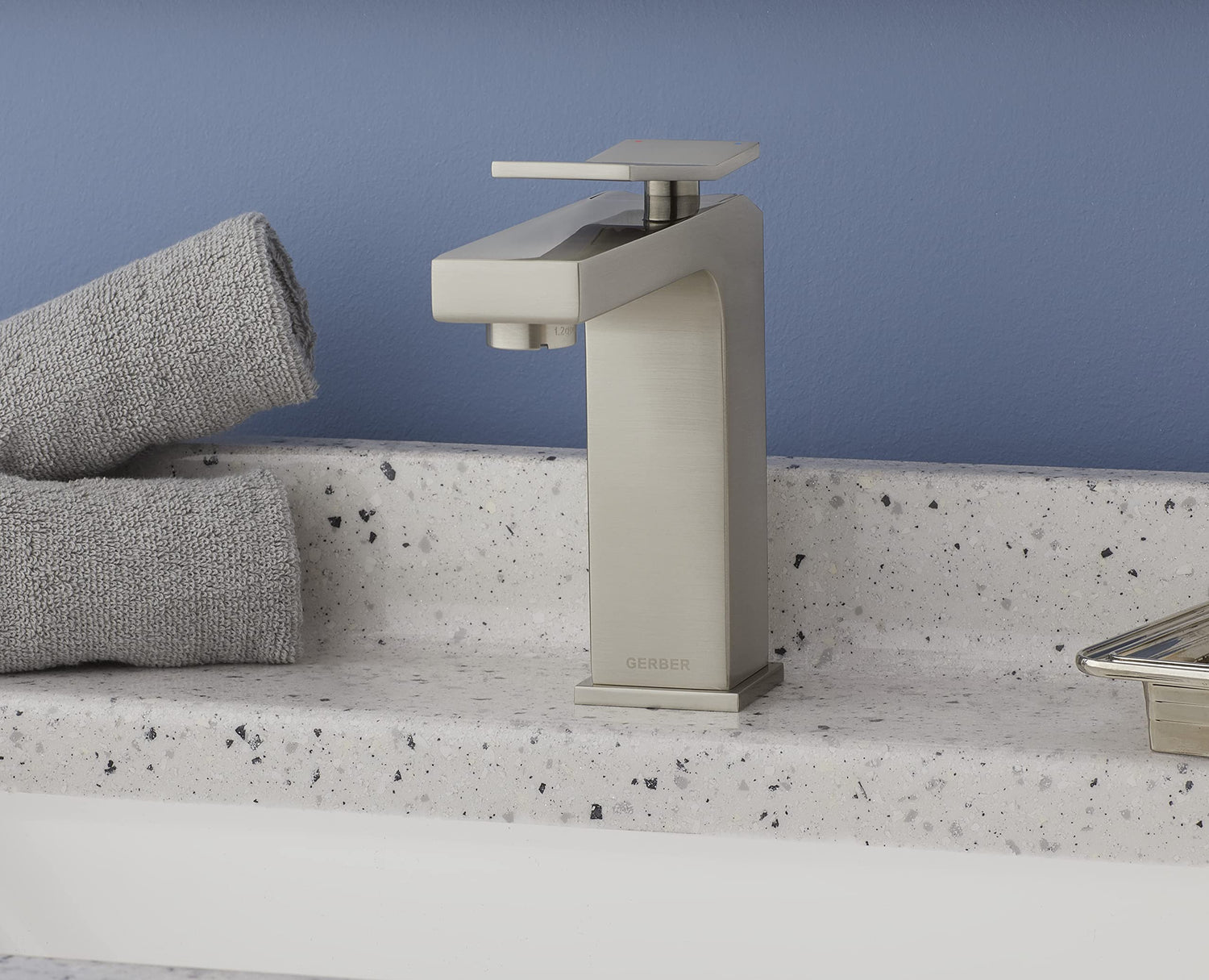 Product DescriptionMinimal design meets function in the new Avian bath collection. Clean, modern lines and distinct edges make it contemporary yet ageless. Simplistic linear handles require the lightest of touch, and integrate seamlessly into the contemporary bathroom.From the ManufacturerFor nearly 20 years, the kitchen and bath industry has known Danze as a leader in product design and beautiful styling. What industry professionals and homeowners may not have known is that Danze has a sister company, Gerber - an 85-year-old manufacturer of some of the highest performing, most reliable products on the market. To best meet the diverse and ever-changing needs of home products, Danze has transformed to be Danze by Gerber, a perfect blend of the handcrafted, trusted performance of Gerber on the inside and beautiful design on the outside. The Danze by Gerber product combination can be found in a range of kitchen and bath faucets, bath accessories and shower systems. A thoughtful balance of form and function. Inspired, beautiful design on the outside. Handcrafted, trusted performance on the inside. A combination that results in true value and commitment. You can call it a breath of fresh air. We call it Danze by Gerber. Product Information Product Overview Connection Type: 9/16 -24unef 3/8 Compression ConnectionFlow Rate: 1.2gpm Max Flow Rate @ 60 psiInstallation: 1-Hole InstallationSpray/Stream Function: Features a Clear Non-Splash Laminar Water StreamBrand: Gerber Features Cartridge Type: Includes Durable Ceramic Disc Valve for Drip-Free PerformanceSpout Swivel: Fixed SpoutWarranty: Limited lifetime Components Drain Type: Includes Metal Touch-Down Drain Assembly for Easy InstallationIncludes: Temperature Indicators on Faucet BodyDeck Plate Sold Separately: Da607568 Optional Deck Plate Sold Separately