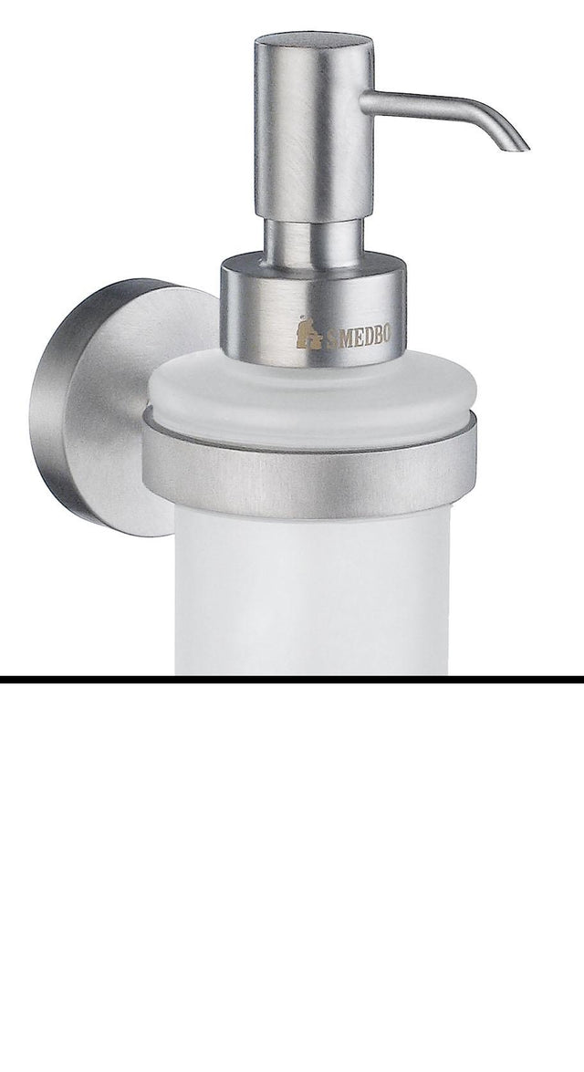 About The Smedbo Home Holder with Glass Soap Dispenser in Frosted Glass in Brushed Chrome