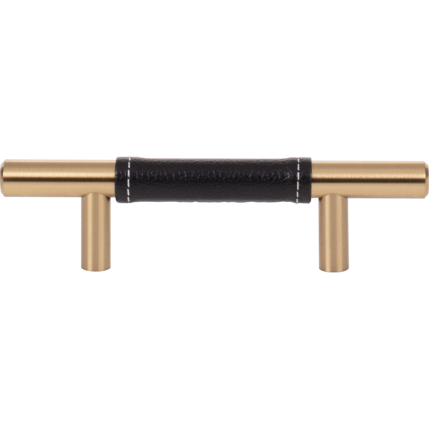 Zanzibar Black Leather Pull 3 Inch (c-c) Warm Brass