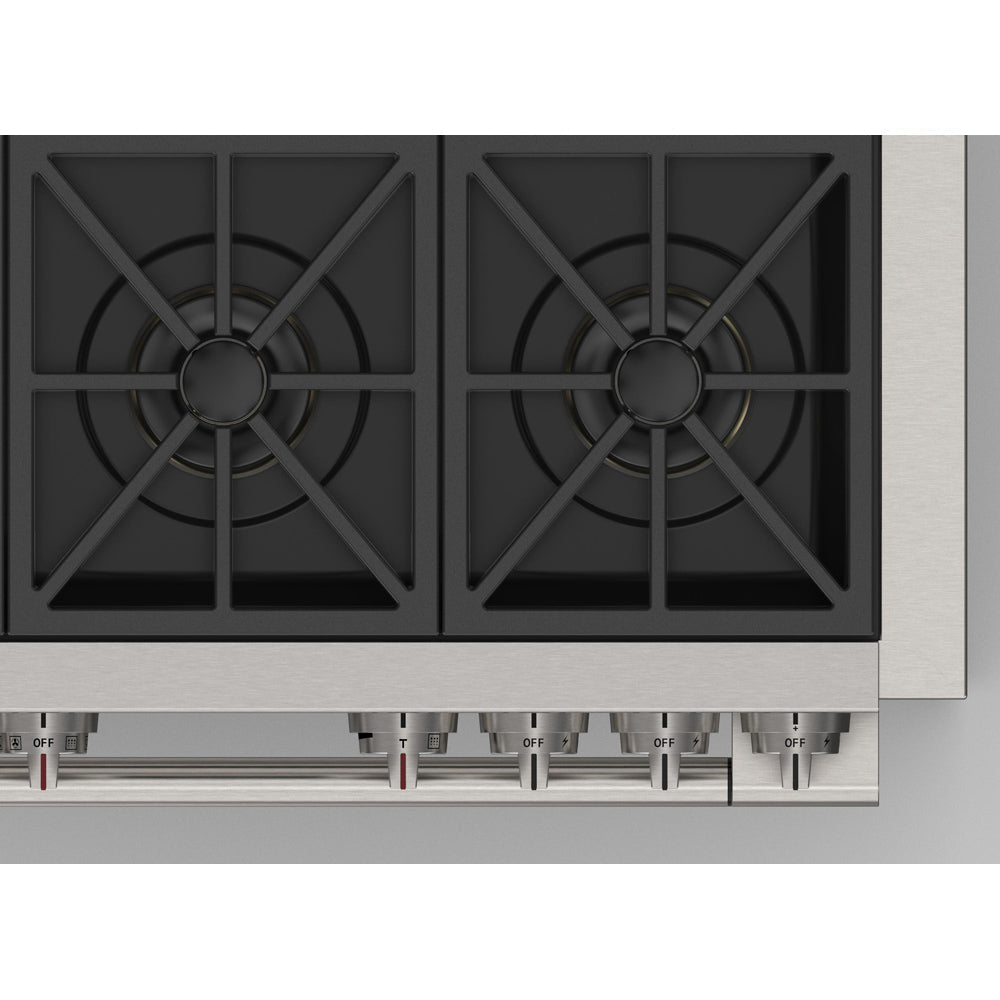 Thoughtfully designed cooking surface with 6 burner positions, each with a 5-in-1 Crescendo burner. Heavy-duty cast iron grates form a continuous surface for easy movement of pots and pans. The heart of Sofia is her oven with dual convection, commercial-style racks, multi-level lighting, and a full-extension rack with stainless glides. But that's not all: you can create your personalized nameplate for the oven door!