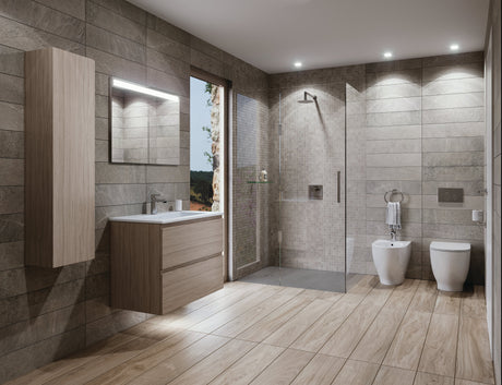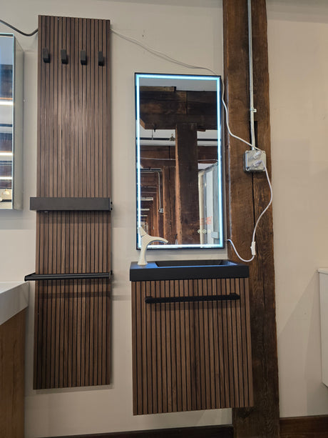 Very low stock (1 unit)20" Rimini Floating Vanity Set Maple Finish, Wall Panel + LED Mirror