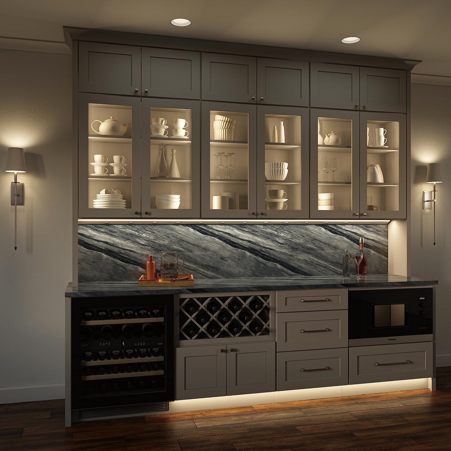Task Lighting LP24QD8NDGSN27 24-1/2" 800 Lumen Direct Voltage DV Lighted Power Strip, Satin Nickel Finish, Grey Receptacles, 2700K Warm White