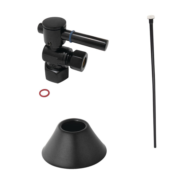 This 3-piece toilet supply kit from Kingston Brass provides all the necessary parts in the water flow process of your bathroom toilet. The set includes a single lever 1/2-14 NPT x 3/8" O.D. compression angle stop, a 20" flat head supply line, and a 1/2" IPS bell flange. Constructed of high quality brass and a tarnish-resistant finish, designed for long-lasting performance. Available in a variety of stunning finishes ready to match any home decor.