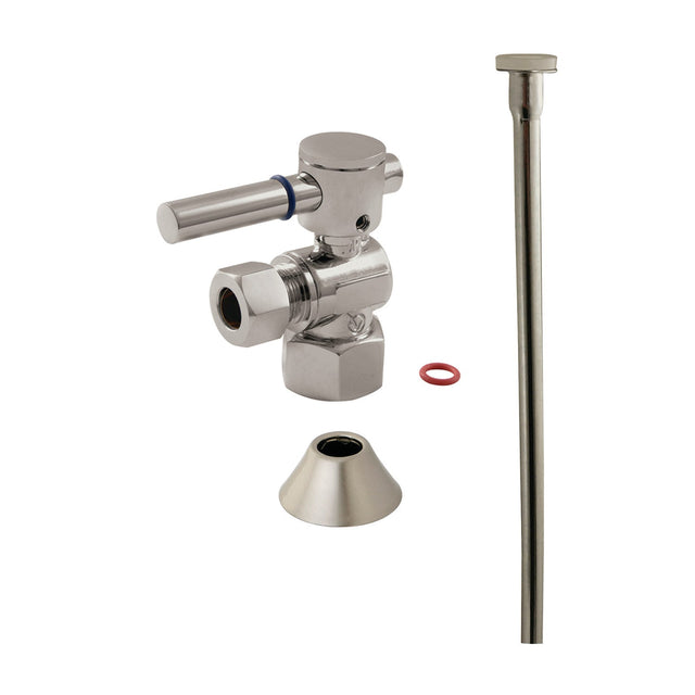 This 3-piece toilet supply kit from Kingston Brass provides all the necessary parts in the water flow process of your bathroom toilet. The set includes a single lever 1/2-14 NPT x 3/8" O.D. compression angle stop, a 20" flat head supply line, and a 1/2" IPS bell flange. Constructed of high quality brass and a tarnish-resistant finish, designed for long-lasting performance. Available in a variety of stunning finishes ready to match any home decor.