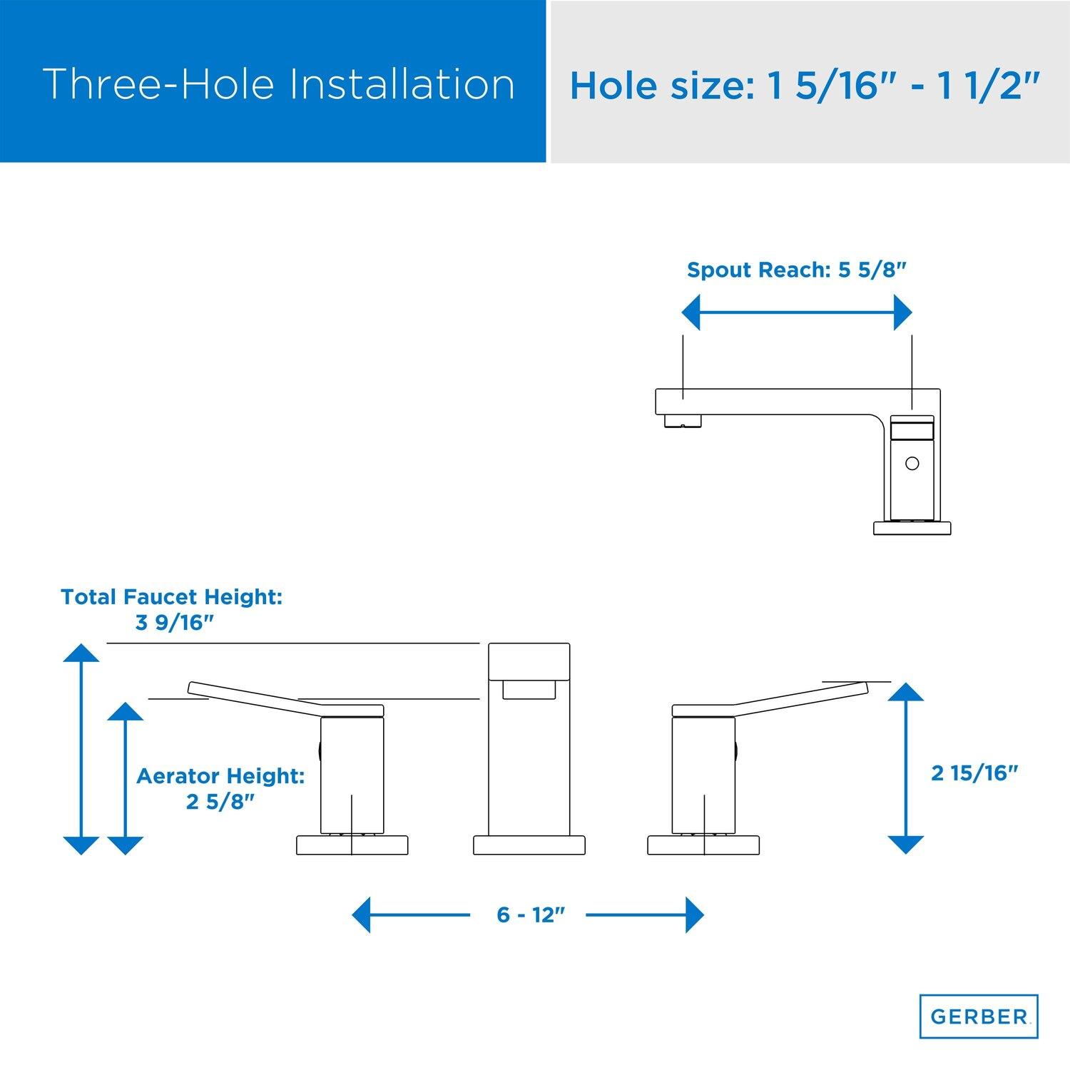 Product Information Product Overview Connection Type: 1/2 -14npsm ConnectionFlow Rate: 1.2gpm Max Flow Rate @ 60 psiInstallation: 3-Hole Installation 6 -12 InstallationSpray/Stream Function: Features a Clear Non-Splash Laminar Water StreamBrand: Gerber Features Cartridge Type: Includes Durable Ceramic Disc Valve for Drip-Free PerformanceSpout Swivel: Fixed SpoutWarranty: Limited lifetime Components Drain Type: Includes Metal Touch-Down Drain Assembly for Easy Installation