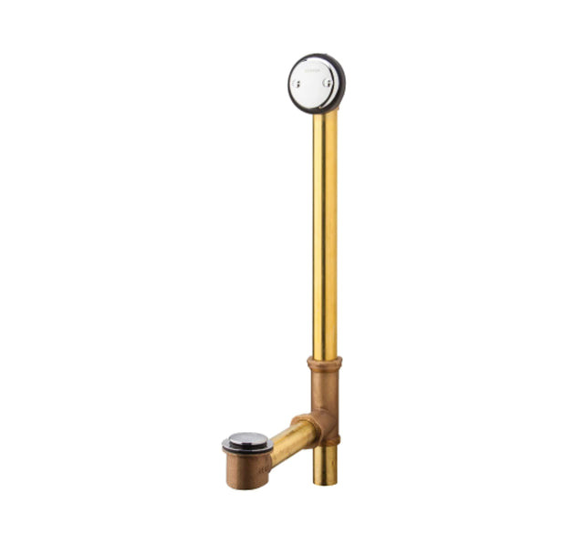 Gerber Classics Auto Trip Drain for Roman Tub Chrome Product Information Product Overview Drain Location: Drain in TeeGauge: 17Material/Material Construction: BrassBrand: Gerber Features 1 1/2 Brass Tubing in 17 GaugeAdjustable Self-Retaining Rubber Head GasketCast Brass Shoe PlugHeavy Duty Cast Red Brass Head Tee and Shoe Description Gerber offers a variety of different types of drains including lift-up and pop-up drains. Each type of drain helps to channel the flow of water and features a solid rubber stopper to ensure the retention of water when needed. The sturdy construction of the drains help to ensure that they perform reliably for the life of the product. Components Drain Type: Auto Trip
