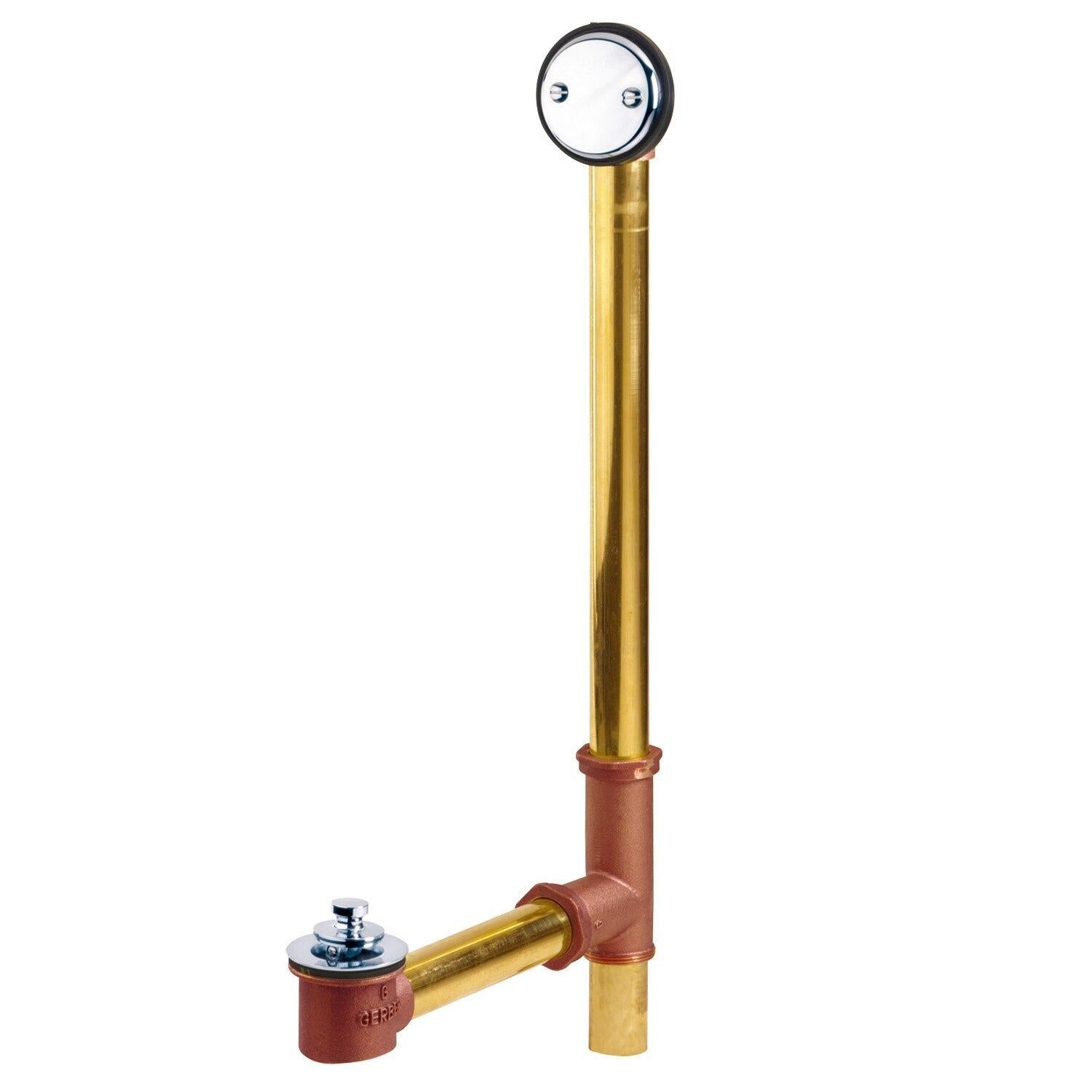 Gerber Classics Lift & Turn Drain for Roman Tub Chrome Product Information Product Overview Drain Location: Drain in TeeGauge: 17Material/Material Construction: BrassBrand: Gerber Features 1 1/2 Brass Tubing in 17 GaugeAdjustable Self-Retaining Rubber Head GasketCast Brass Shoe PlugHeavy Duty Cast Red Brass Head Tee and ShoePre-Adjustable Linkage Description Gerber offers a variety of different types of drains including lift-up and pop-up drains. Each type of drain helps to channel the flow of water and features a solid rubber stopper to ensure the retention of water when needed. The sturdy construction of the drains help to ensure that they perform reliably for the life of the product. Components Drain Type: Lift & Turn