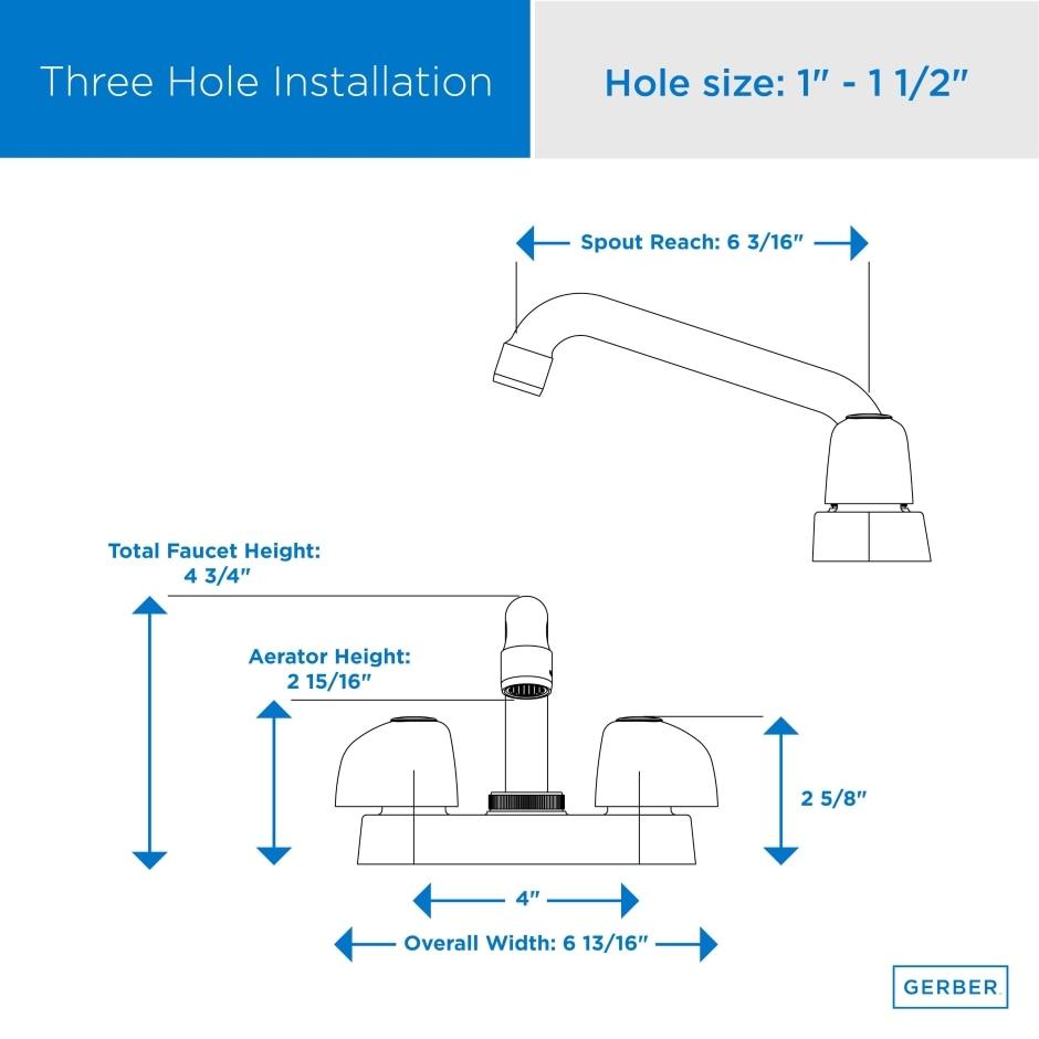 With a dedication to dependability backed by industry-leading customer support, you can be sure the Gerber Classics Two Handle Centerset Laundry Faucet will offer flawless operation for years to come. This utility faucet features ADA-compliant blade handles that incorporate compression cartridges to provide smooth operation along with drip-free performance. Centerset design installs easily. Non-aerated, 6" swivel spout delivers an ample 2.2 gpm flow rate. Easy-to-clean Chrome finish is resistant to fading and tarnishing. Product Information Product Overview Flow Rate: 2.2gpmInstallation: 3-Hole InstallationBrand: Gerber Features 2.2 gpm Maximum Aerator at 60 psiCompression CartridgeSwivel SpoutWith Hot and Cold IndicatorWith Integrated Deck Plate Description Gerber offers a complete line of classic faucets for residential multi-family and light commercial use. Gerber Classics deliver practical and consistent performance at a compelling value. With their sturdy construction Gerber Classics install quickly and securely to get the job done right.