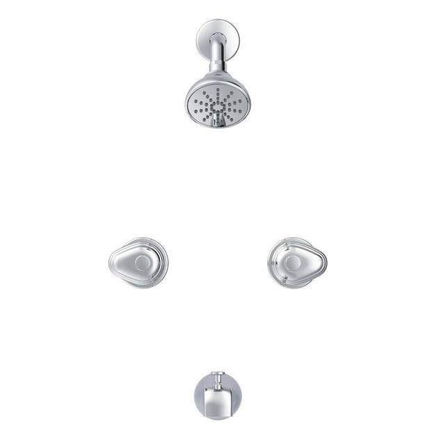 Gerber Hardwater Two Handle Sliding Sleeve Escutcheon Tub & Shower Fitting with Threaded Diverter Spout 2.0gpm Chrome Product Information Product Overview Flow Rate: 1.75gpmBrand: Gerber Features Diverter on Tub Spout in Thread / Slip CombinationIncludes Single Function Showerhead at 1.75gpm @ 80 psi.Cartridge Type: Includes Durable Ceramic Disc Valve for Drip-Free Performance Description Gerber offers a complete line of functional faucets for residential multi-family and light commercial use. Gerber Hardwater faucets deliver practical and consistent performance at a compelling value. With drip-free ceramic disc technology and sturdy construction Gerber Hardwater faucets install quickly and securely to get the job done right.