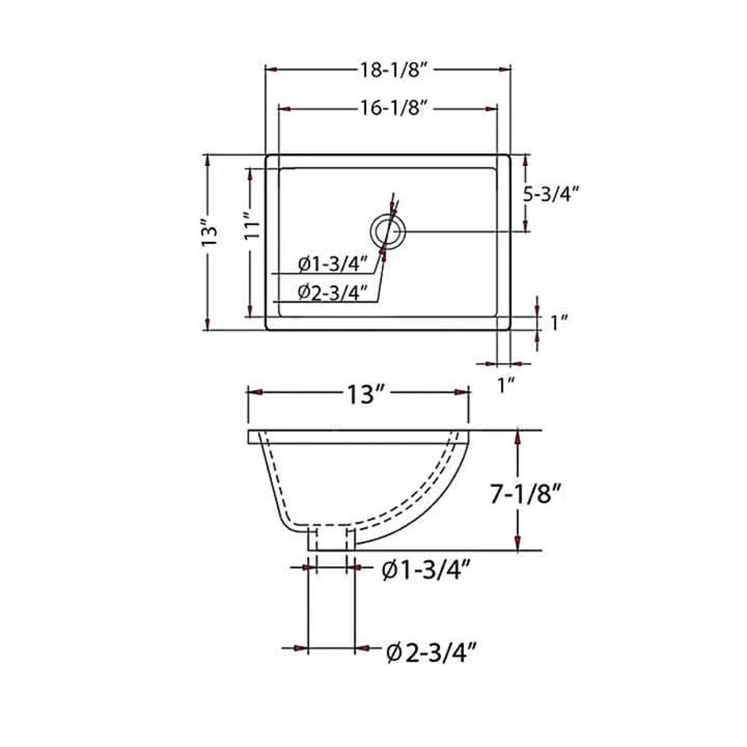 Blossom 18" x 13" Biscuit Rectangular Ceramic Undermount Sink With Overflow