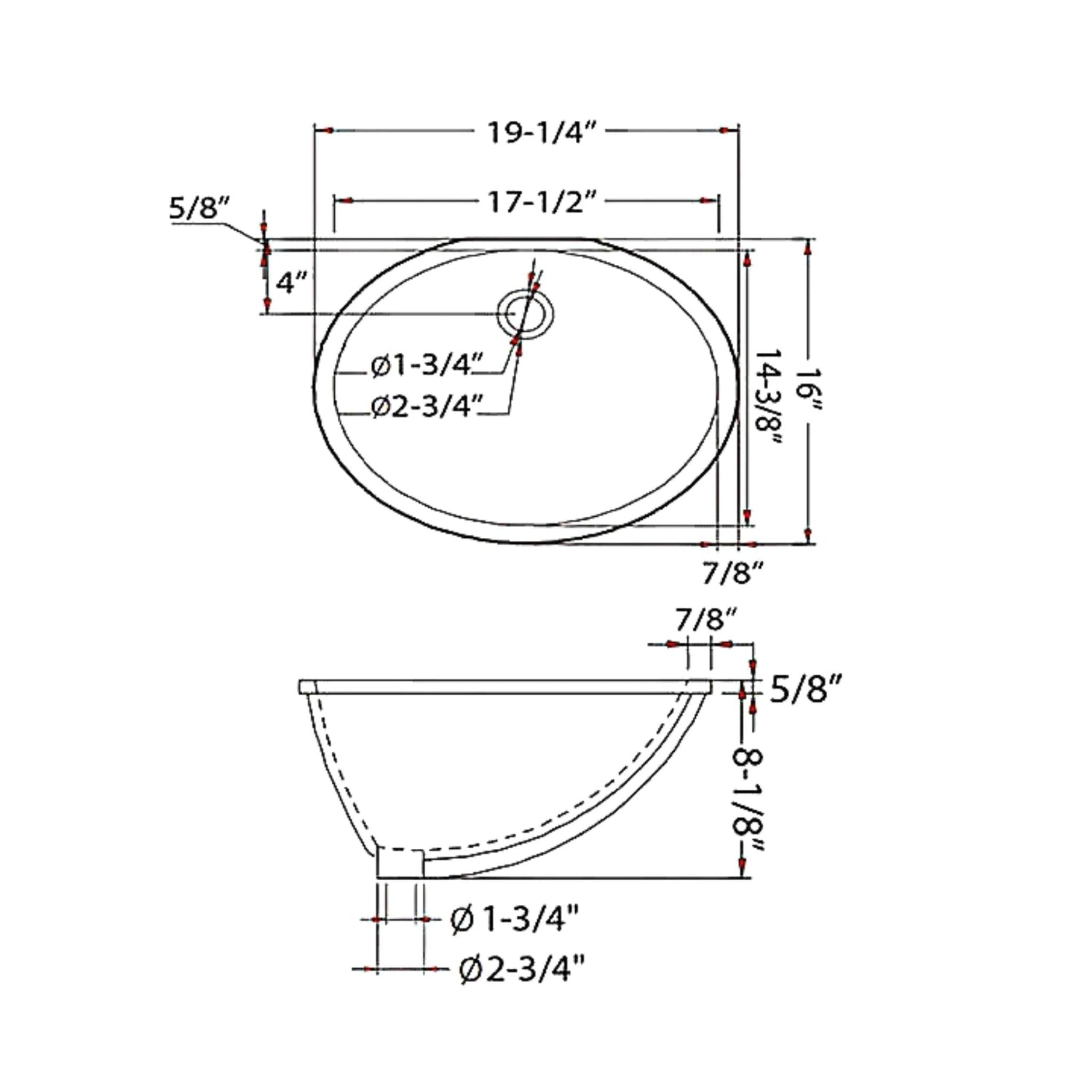 Blossom 19" x 16" Biscuit Oval Ceramic Undermount Sink With Overflow