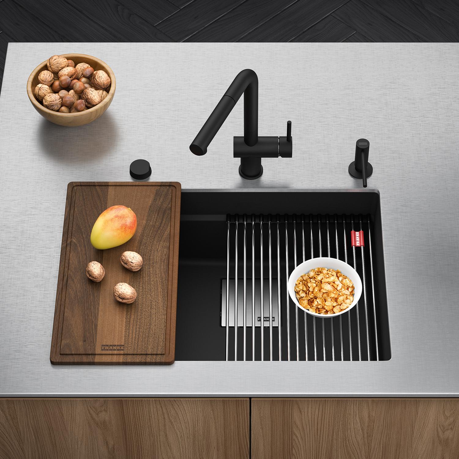 FRANKE PKG11031ONY-WKC Peak Workcenter 32.0-in. x 18.8-in. Onyx Granite Undermount Single Bowl Kitchen Sink In Onyx