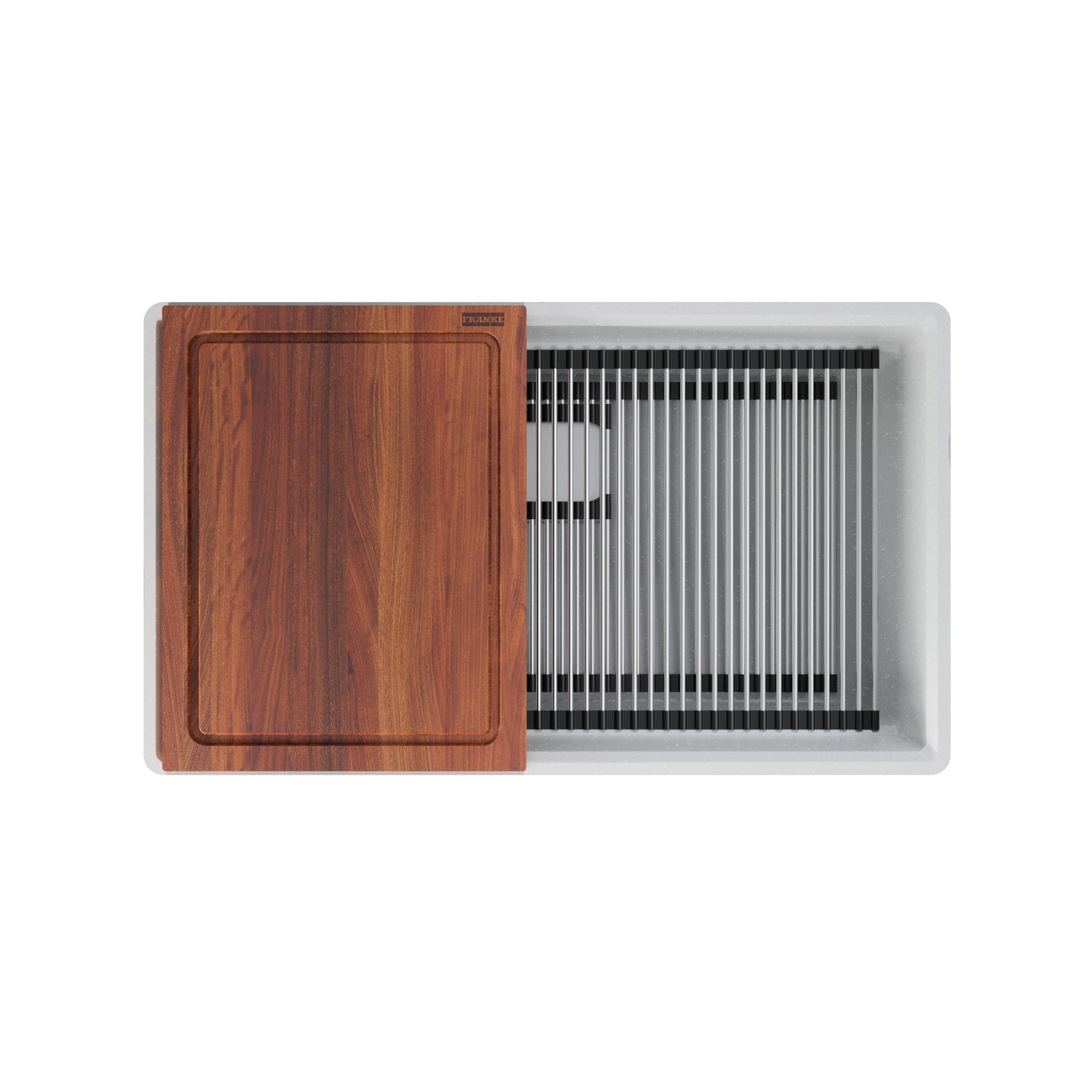 FRANKE PKG11031PWT-WKC Peak Workcenter 32.0-in. x 18.8-in. Polar White Granite Undermount Single Bowl Kitchen Sink In Polar White