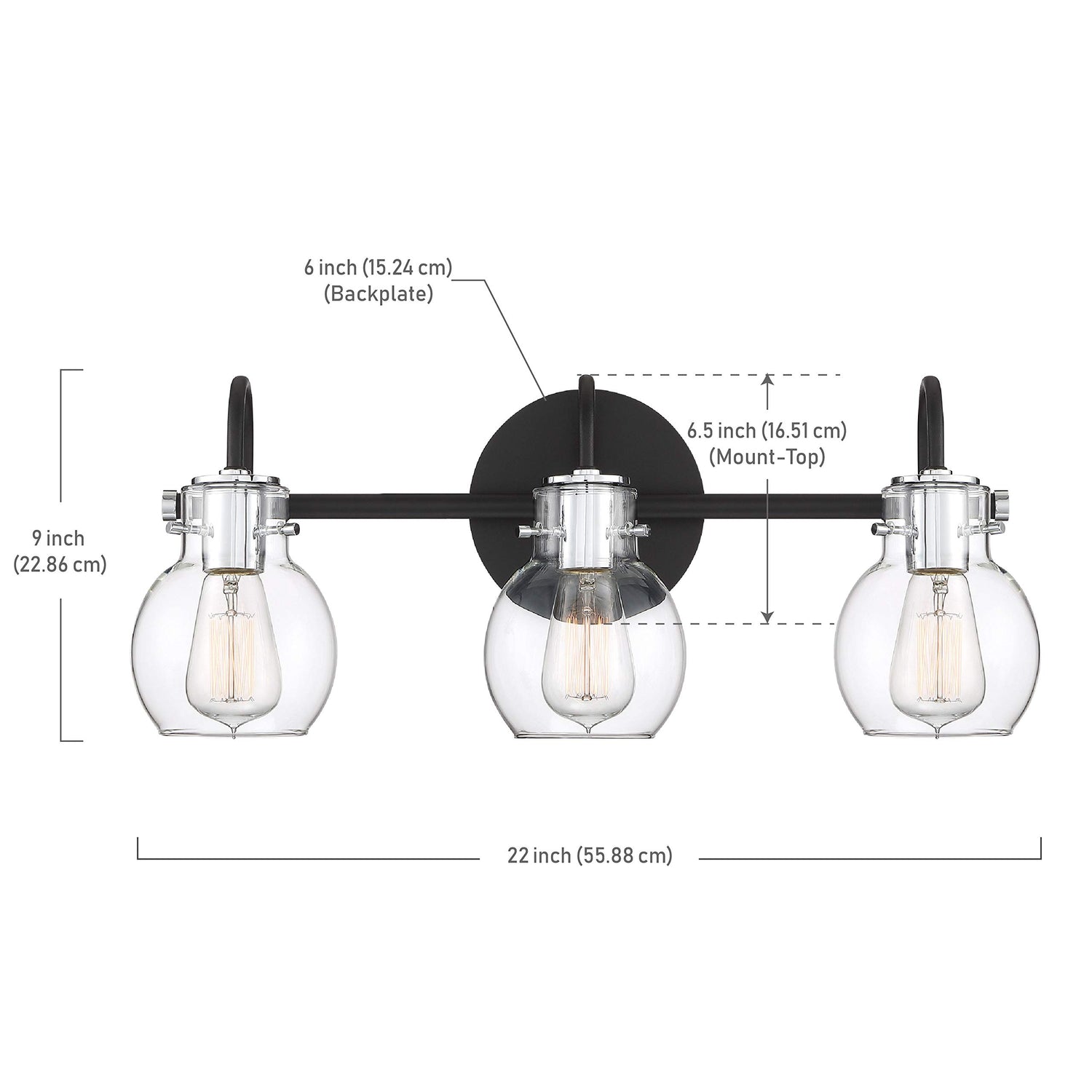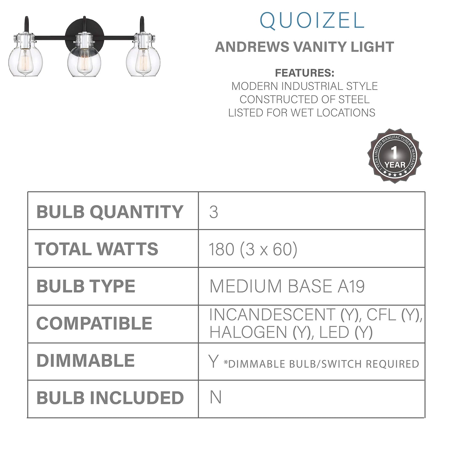 Quoizel ANW83003EK Andrews Vanity Bath Lighting, 3-Light, 300 Watts, Earth Black (9"H x 22"W)