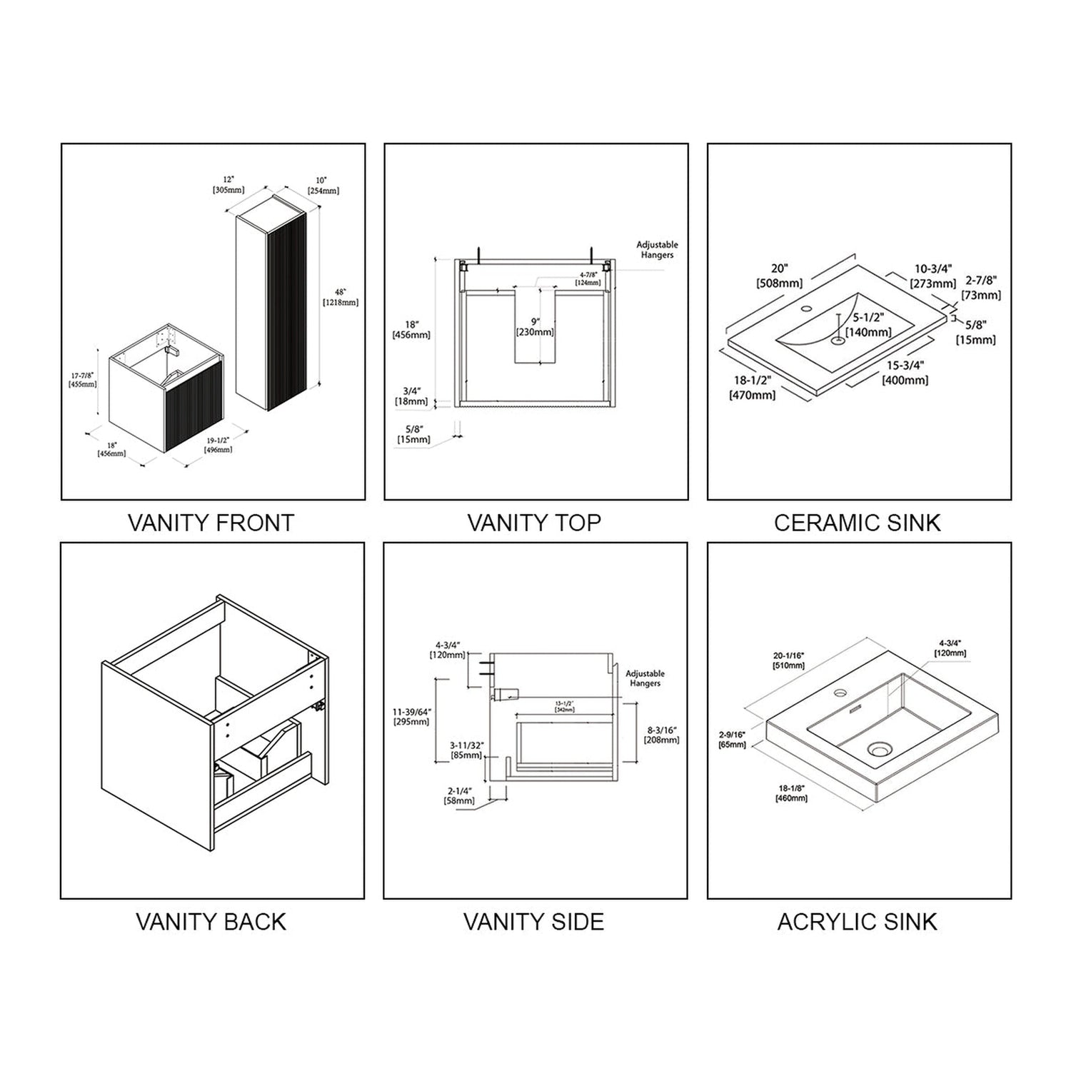 Blossom Positano 20" 1-Drawer Light Gray Wall-Mounted Single Vanity Base