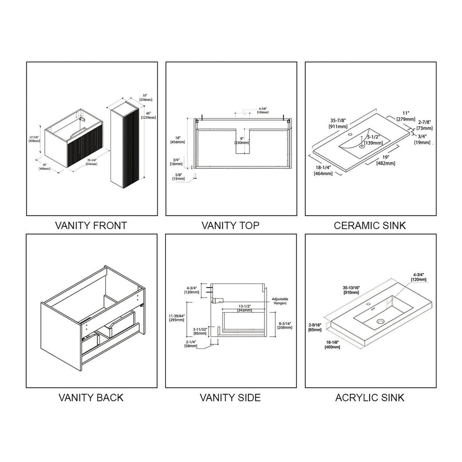 Blossom Positano 36" 1-Drawer Light Gray Wall-Mounted Single Vanity Base