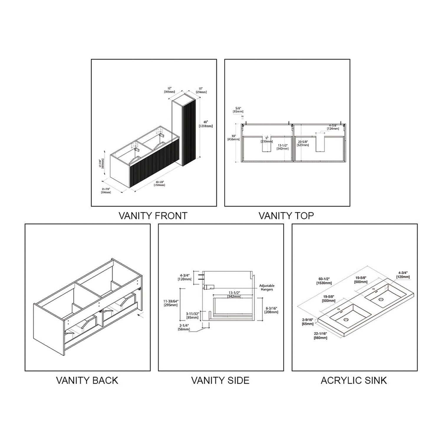Blossom Positano 60" 1-Drawer Light Gray Wall-Mounted Double Vanity Base