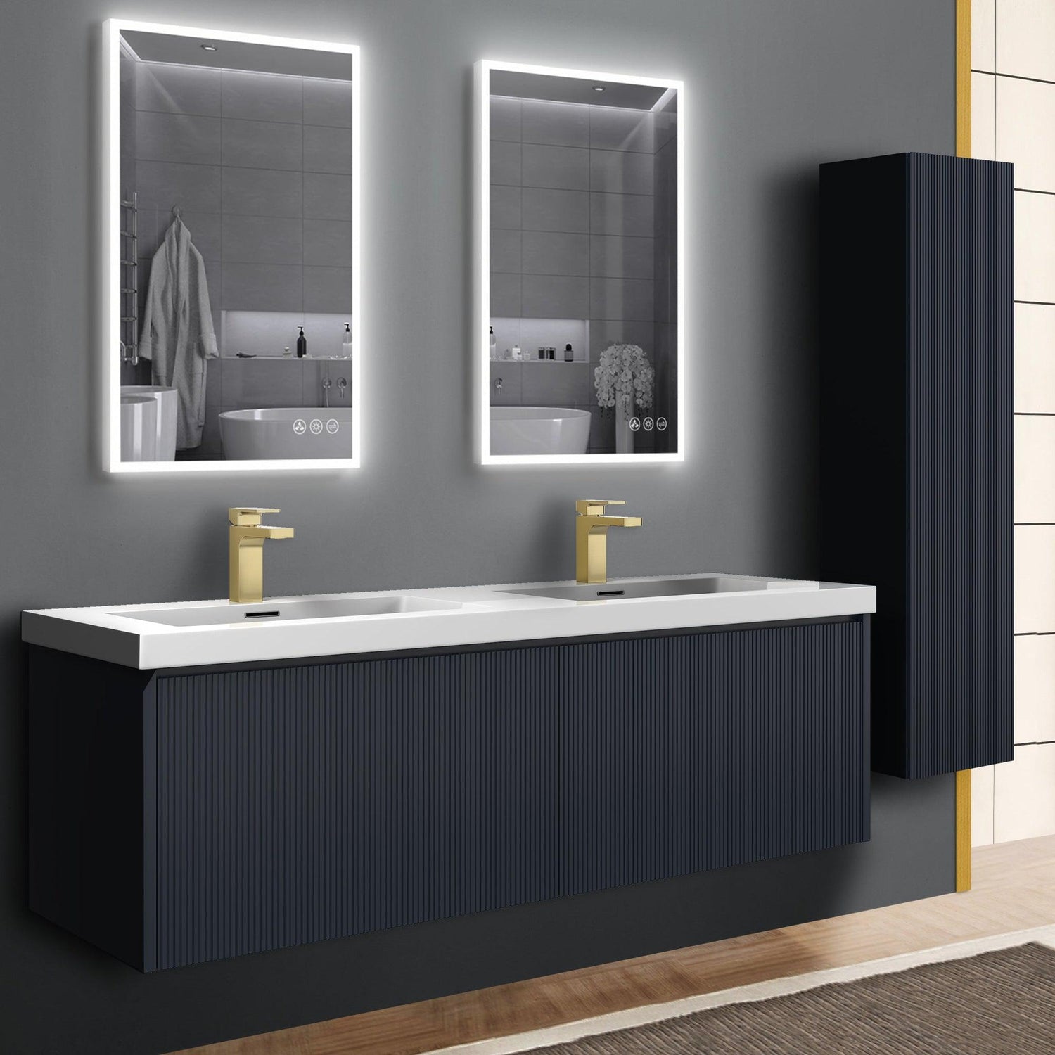 Blossom Positano 60" 1-Drawer Night Blue Wall-Mounted Double Vanity Base