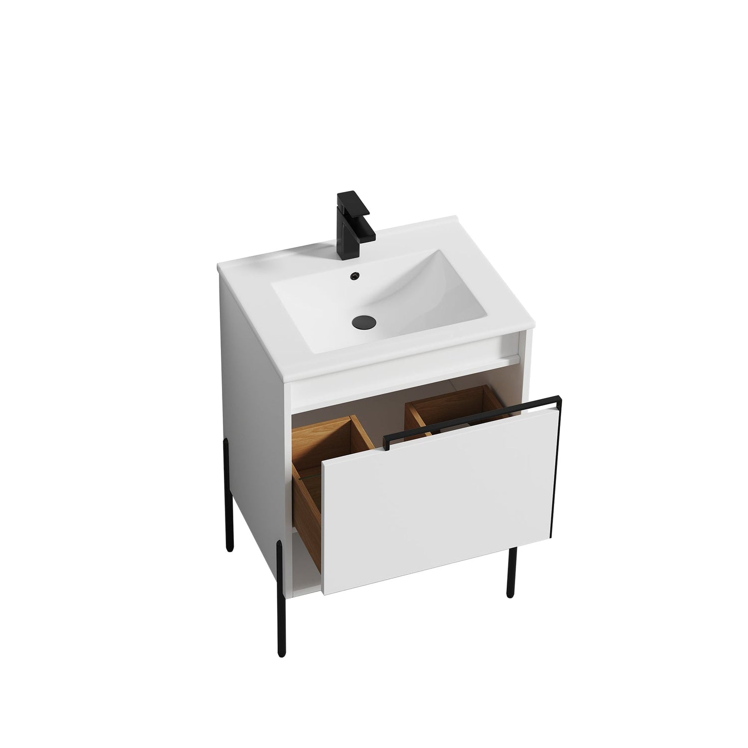 Blossom Turin 24" 1-Drawer Matte White Freestanding Single Vanity Base With Open Shelf, Handle and Legs