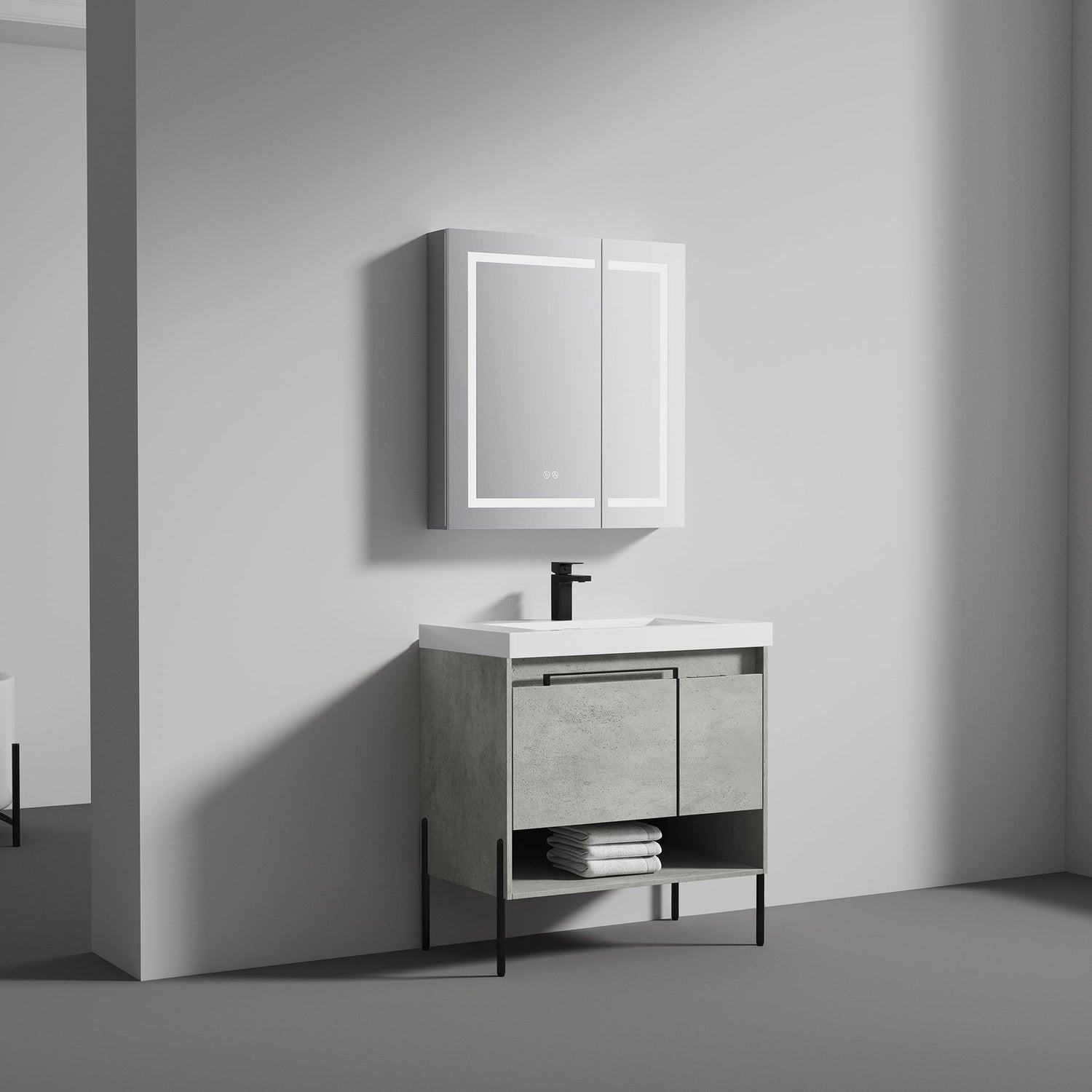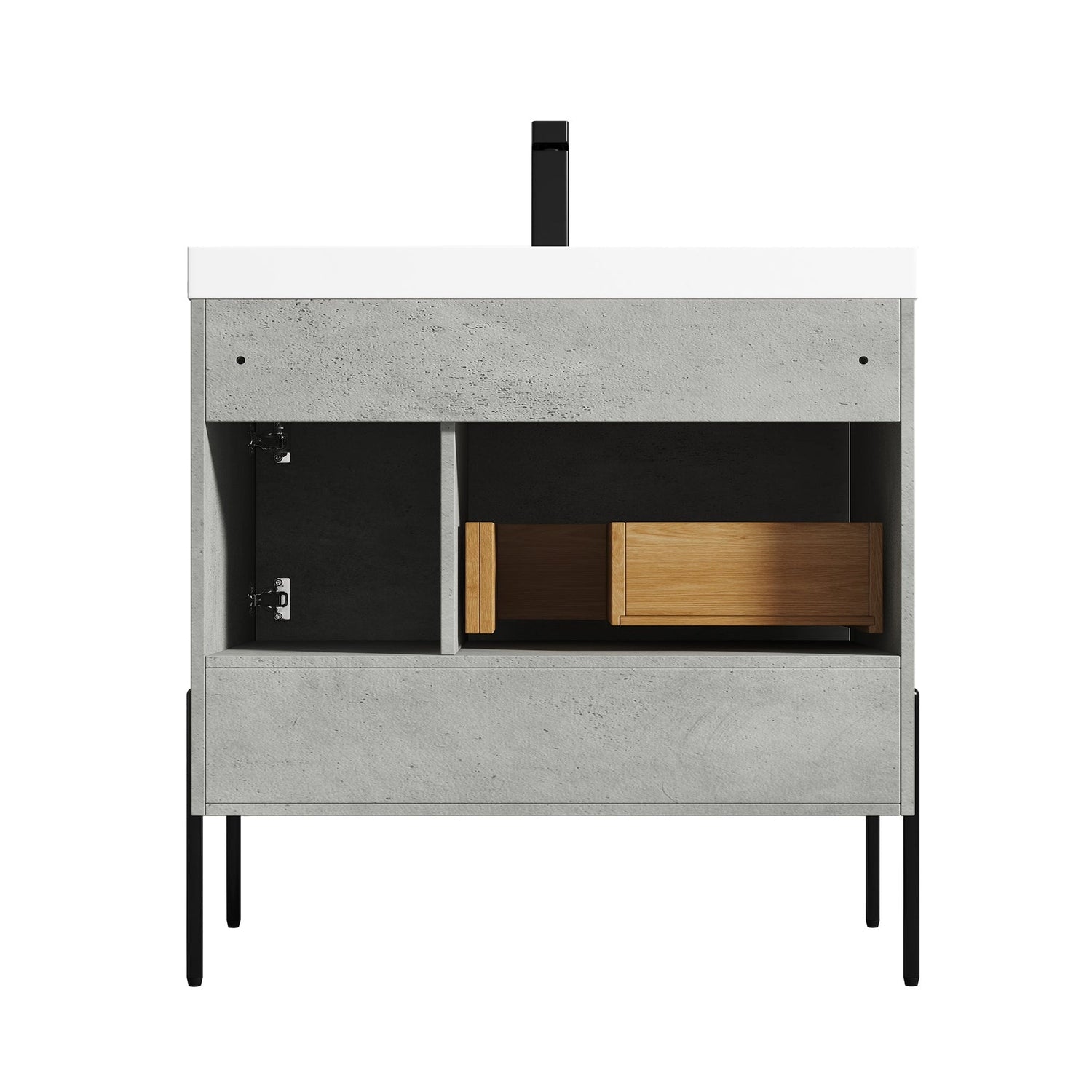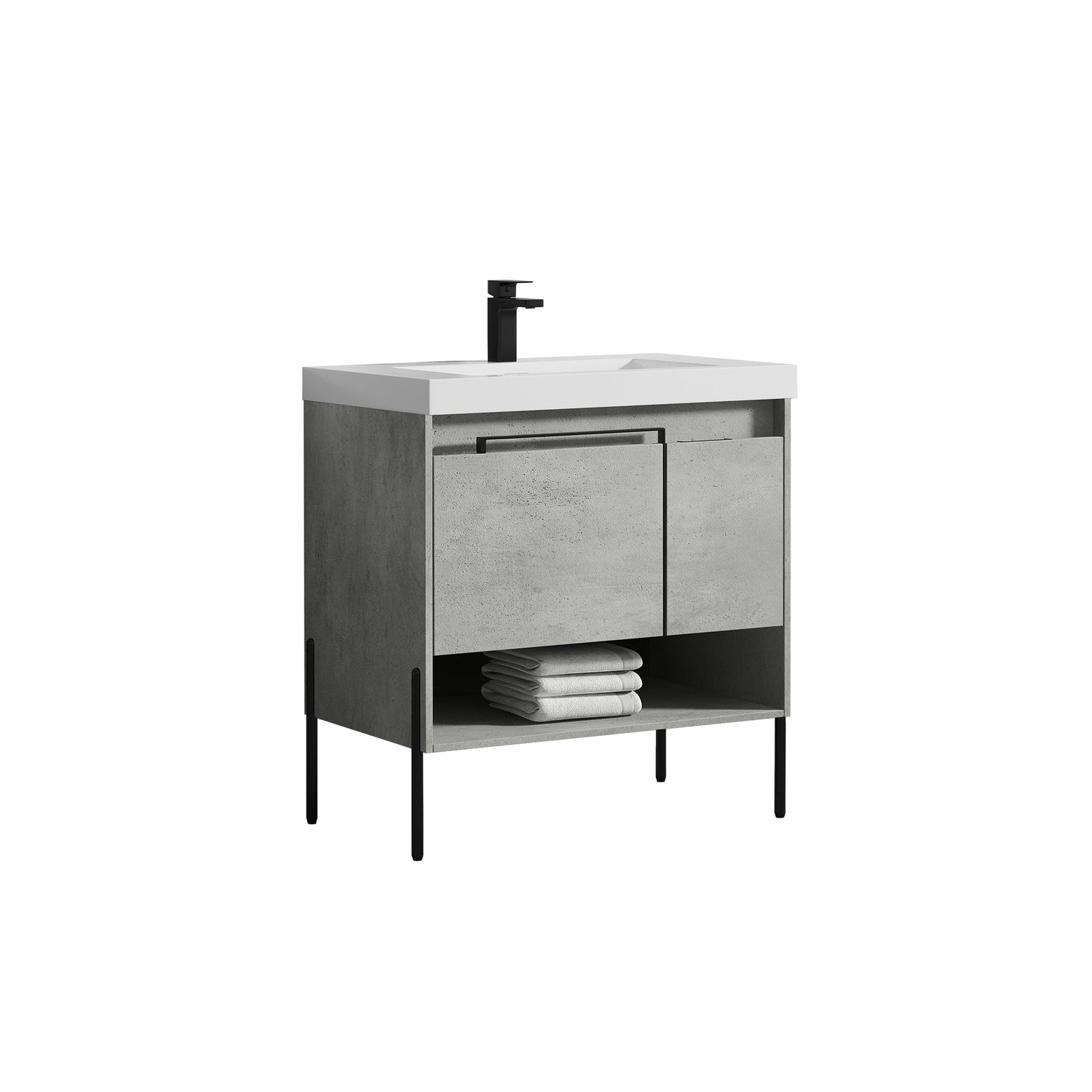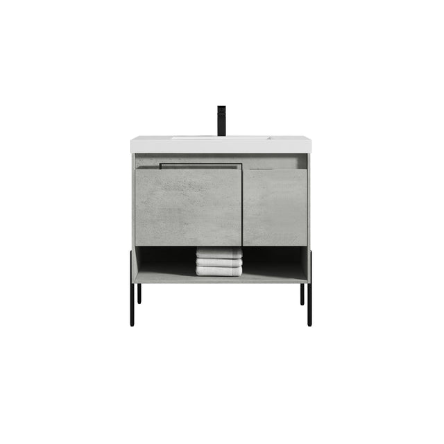Blossom Turin 36" 1-Door 1-Drawer Plain Cement Freestanding Single Vanity Base With Open Shelf, Handle and Legs