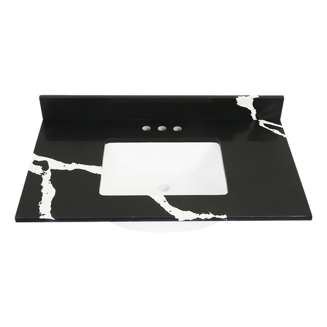 Custom 37x21 “Cowtop” Black Quartz Vanity Top