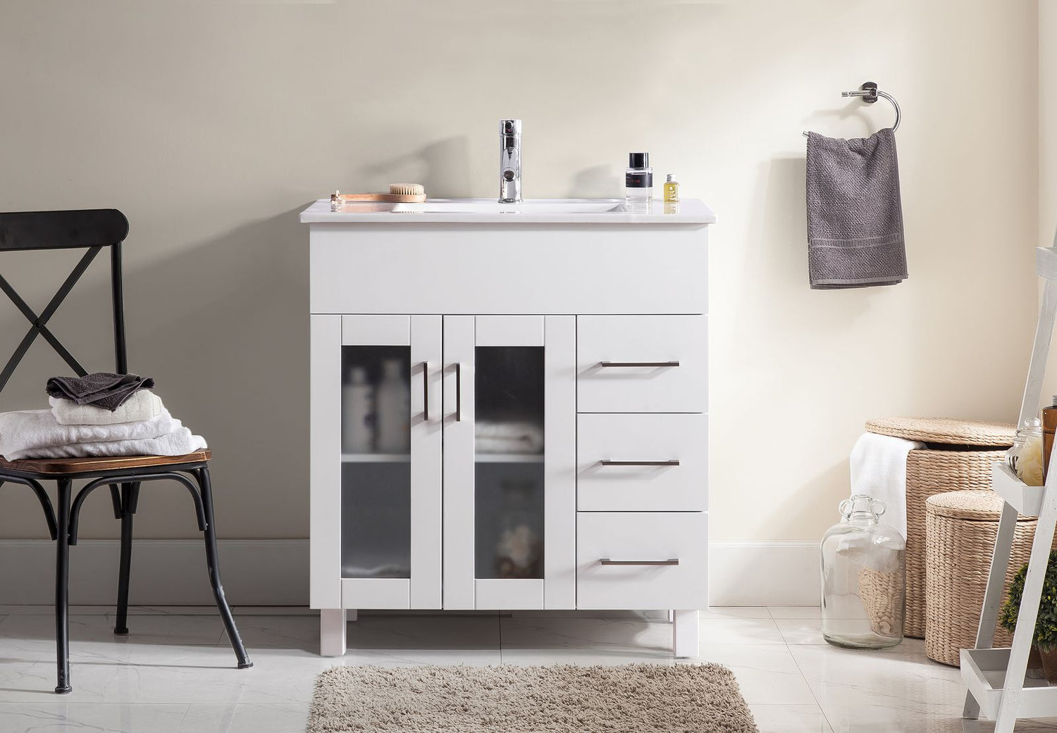 Nova 32" White Bathroom Vanity with White Ceramic Basin Countertop Laviva 31321529-32W-CB