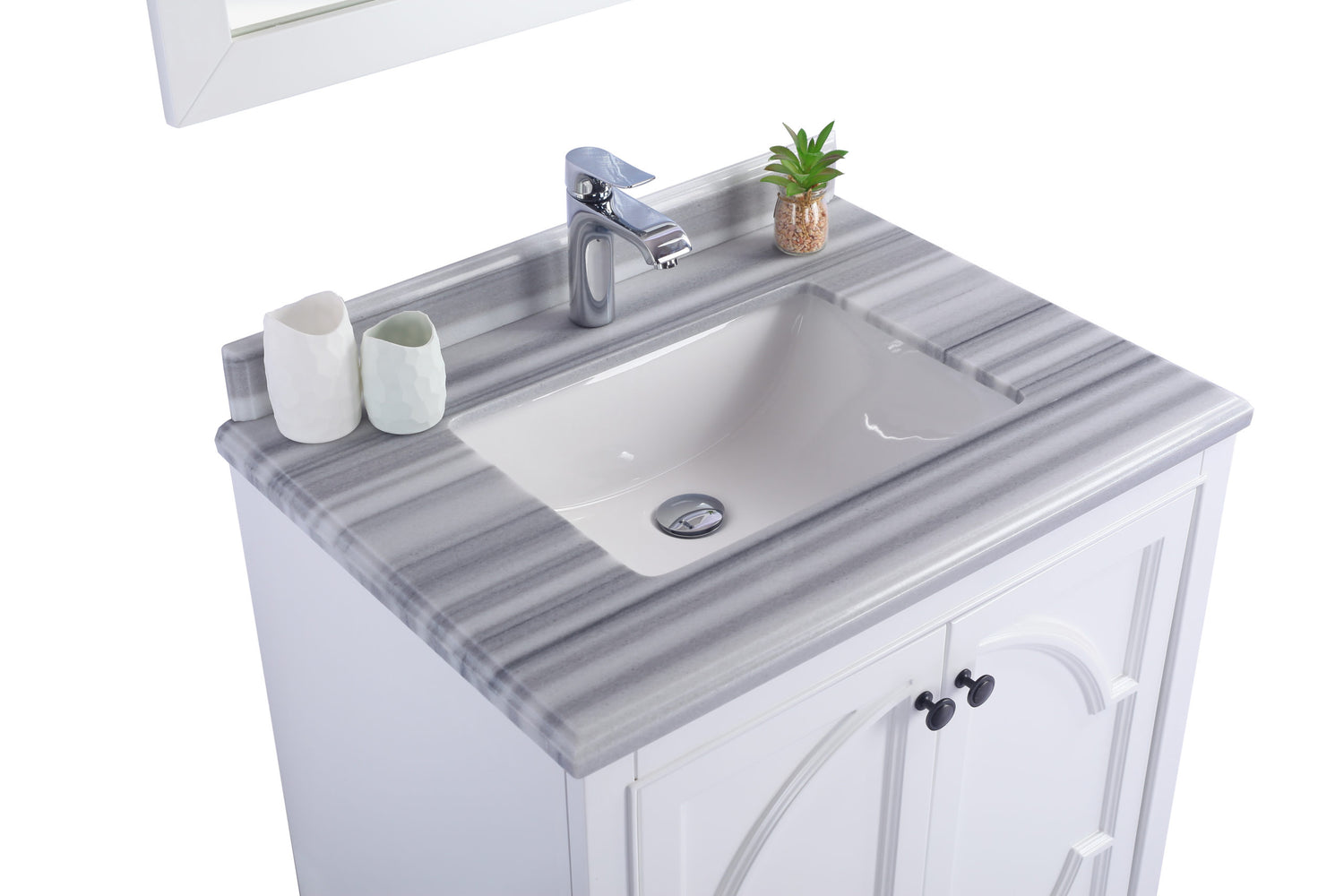 Odyssey 30" White Bathroom Vanity with White Stripes Marble Countertop Laviva 313613-30W-WS
