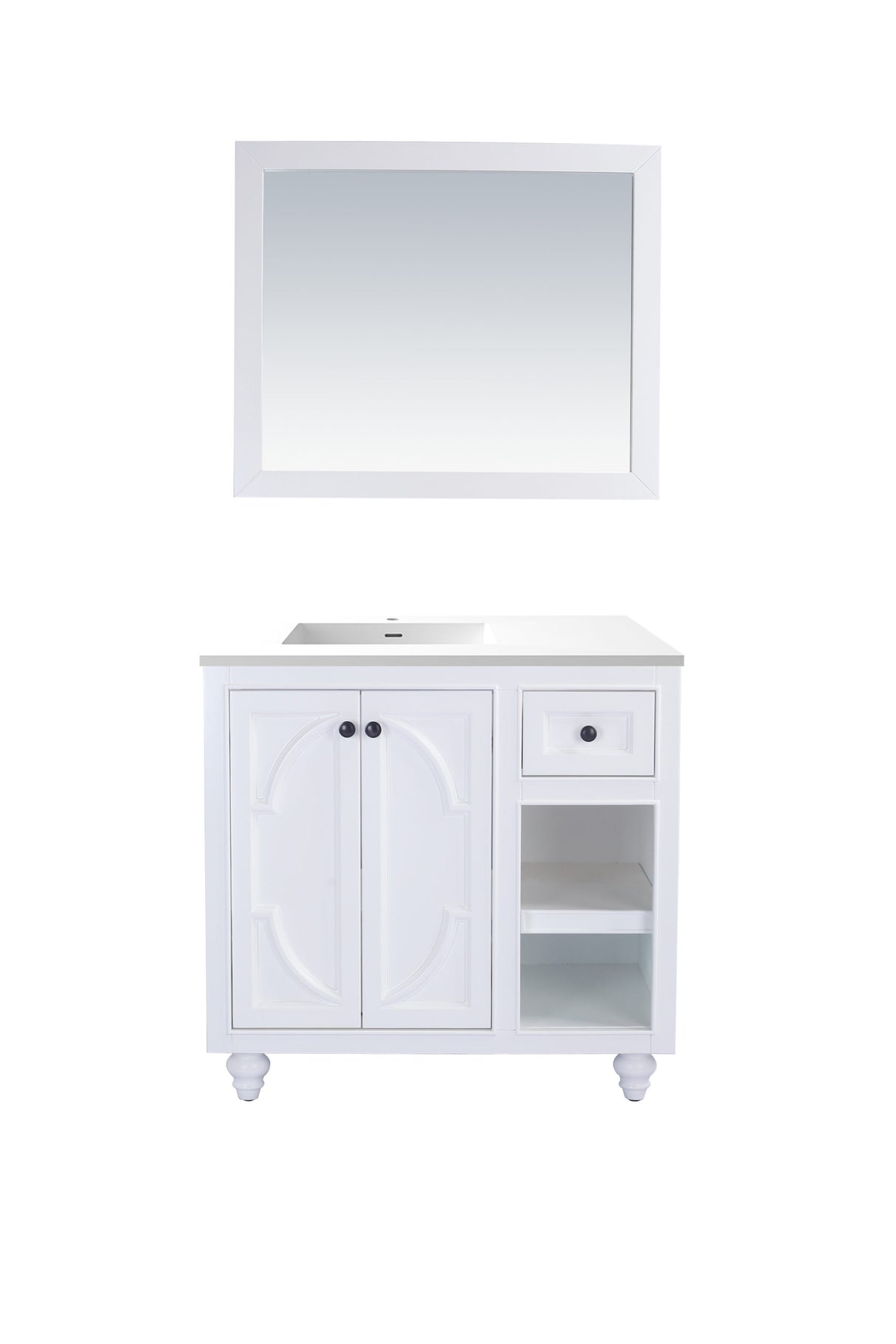 Odyssey 36" White Bathroom Vanity with Matte White VIVA Stone Solid Surface Countertop Laviva 313613-36W-MW